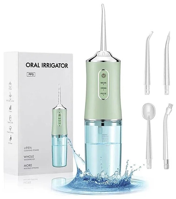 Купить Ирригатор для полости рта с 4мя насадками / Ирригатор полости рта портативный / Ирригатор полости рта / Зеленый