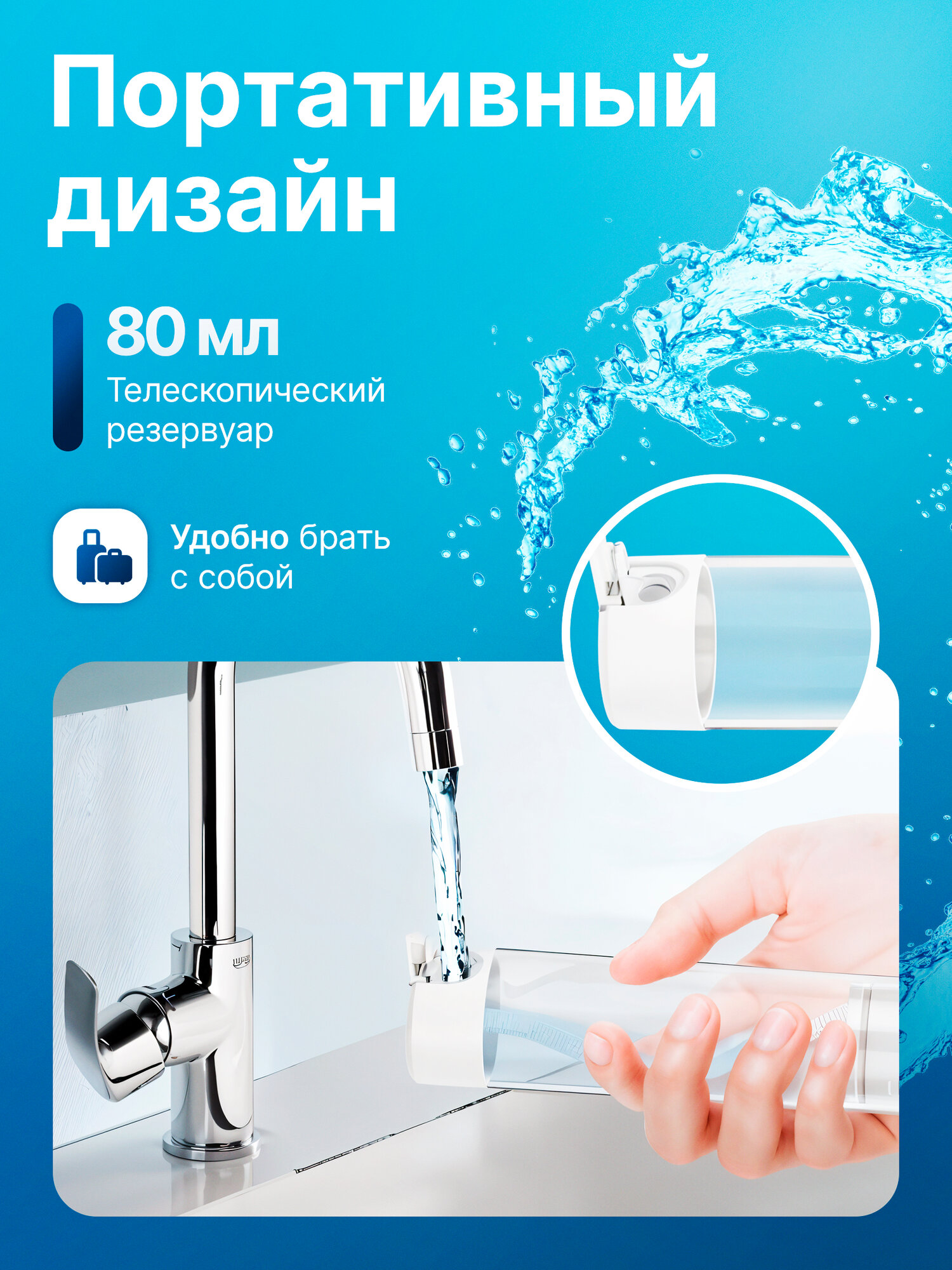 Ирригатор Savlaro, белый, с 4 насадками, для зубов, портативный