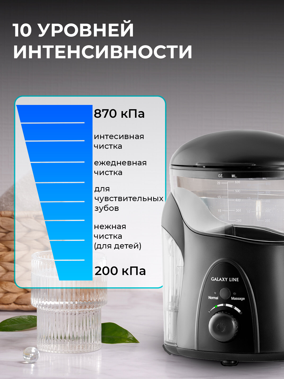 Ирригатор для полости рта Galaxy LINE GL5002, черный, 10-20 Вт, 7 насадок интересное: