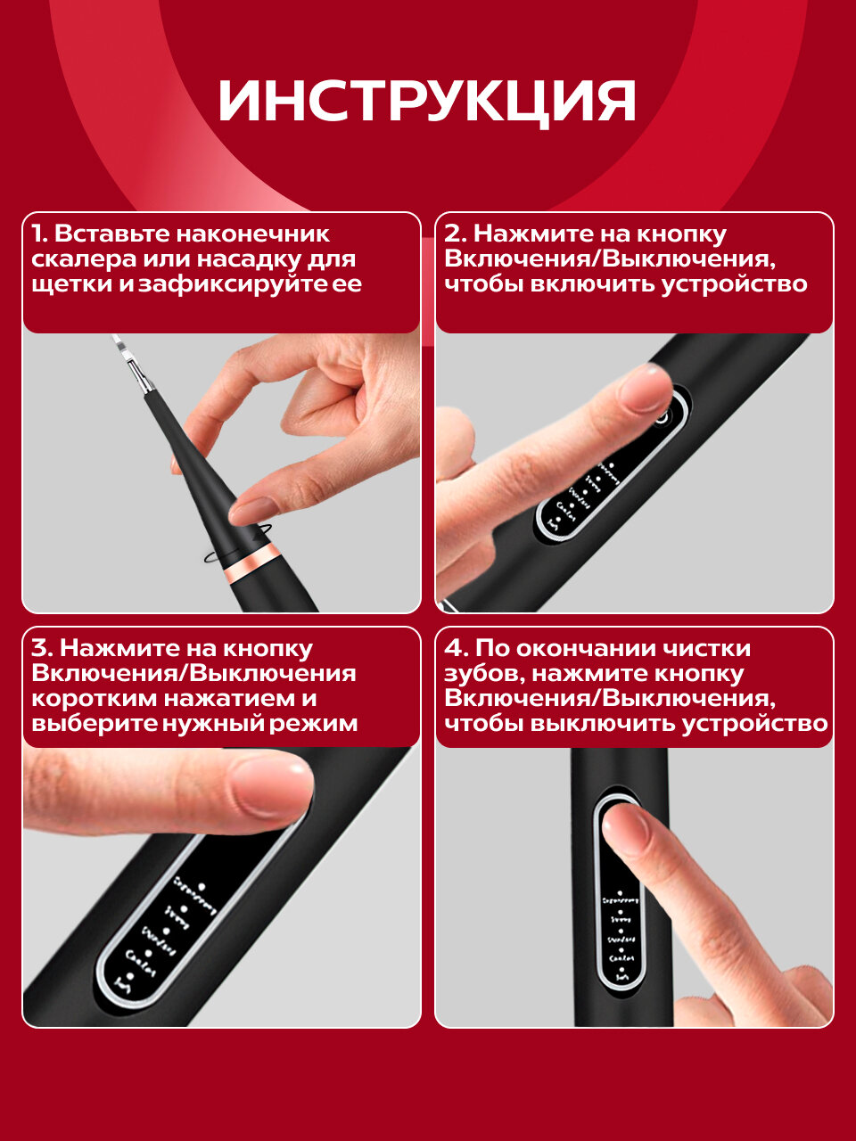 | Подробная комплектация | Брендированная коробка, насадка зубная щётка, наконечник для скалера, стоматологическое зеркало, подставка, зарядное устройство Type-C, инструкция на русском языке |