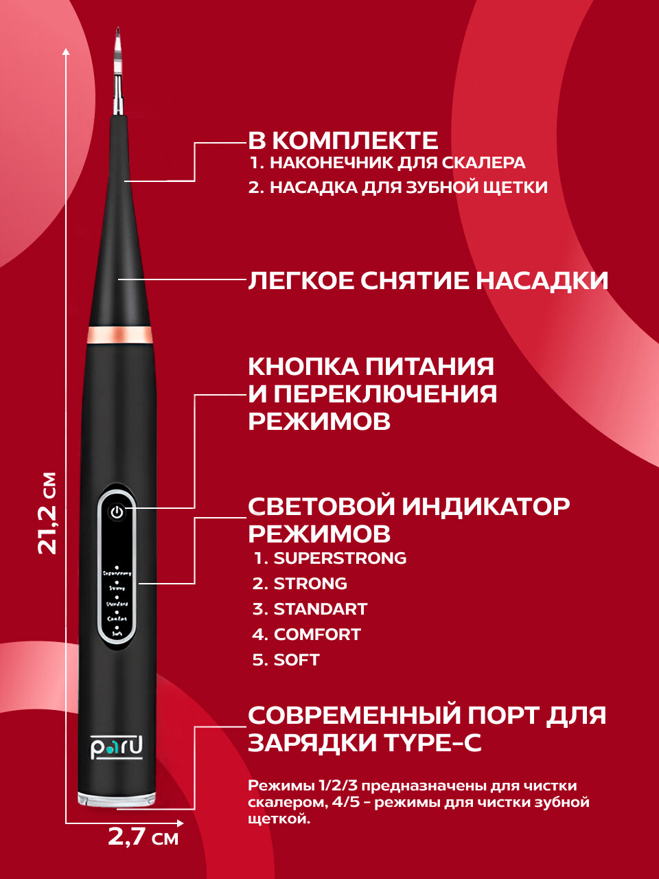 Скалер ультразвуковой Скалер для зубов Электрическая зубная щетка Ультразвуковая зубная щетка 2в1 PARU интересное: