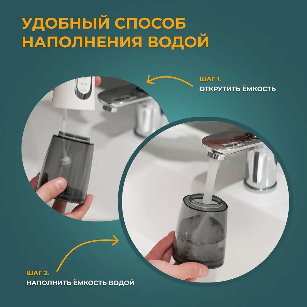 Портативный ирригатор для полости рта, 4 насадки, резервуар 200 мл, бирюзовый/оранжевый