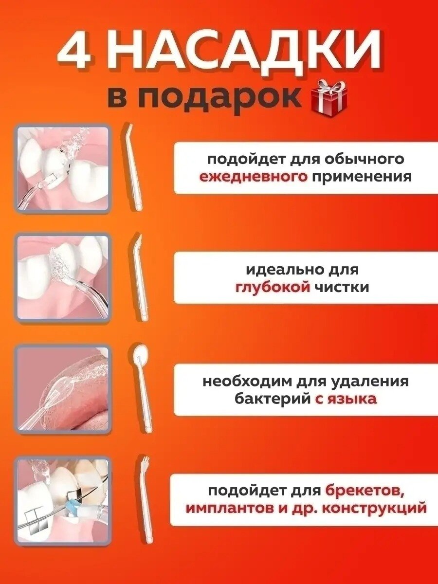 Ирригатор для полости рта портативный, 3 режима для чистки зубов и брекетов языка импульсивный ортодонтический интересное: