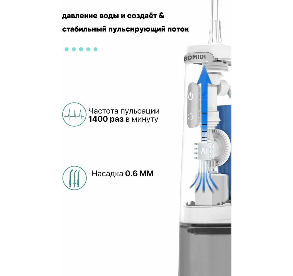 Bomidi портативный ирригатор Portable Oral Irrigator (D3 PRO), голубой интересное: