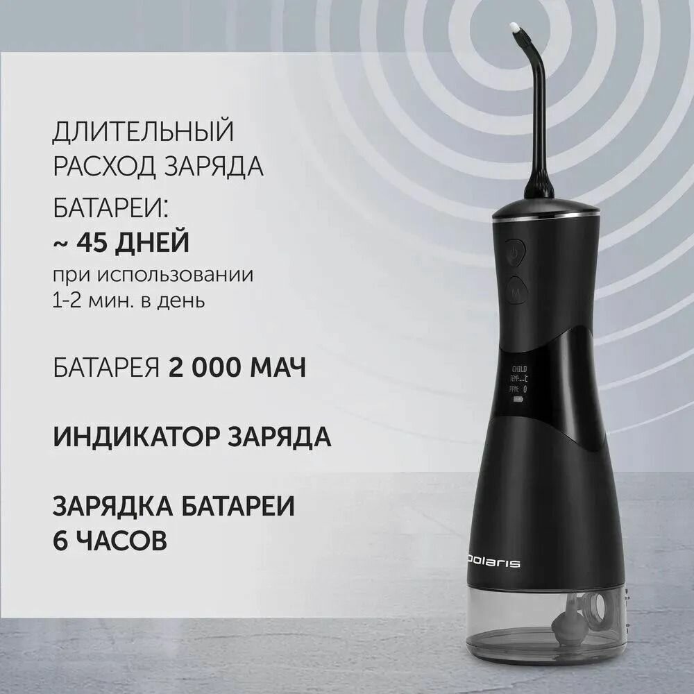 Купить Ирригатор портативный Polaris PWF 0301T Smart Display для полости рта, 6 насадок / Черный