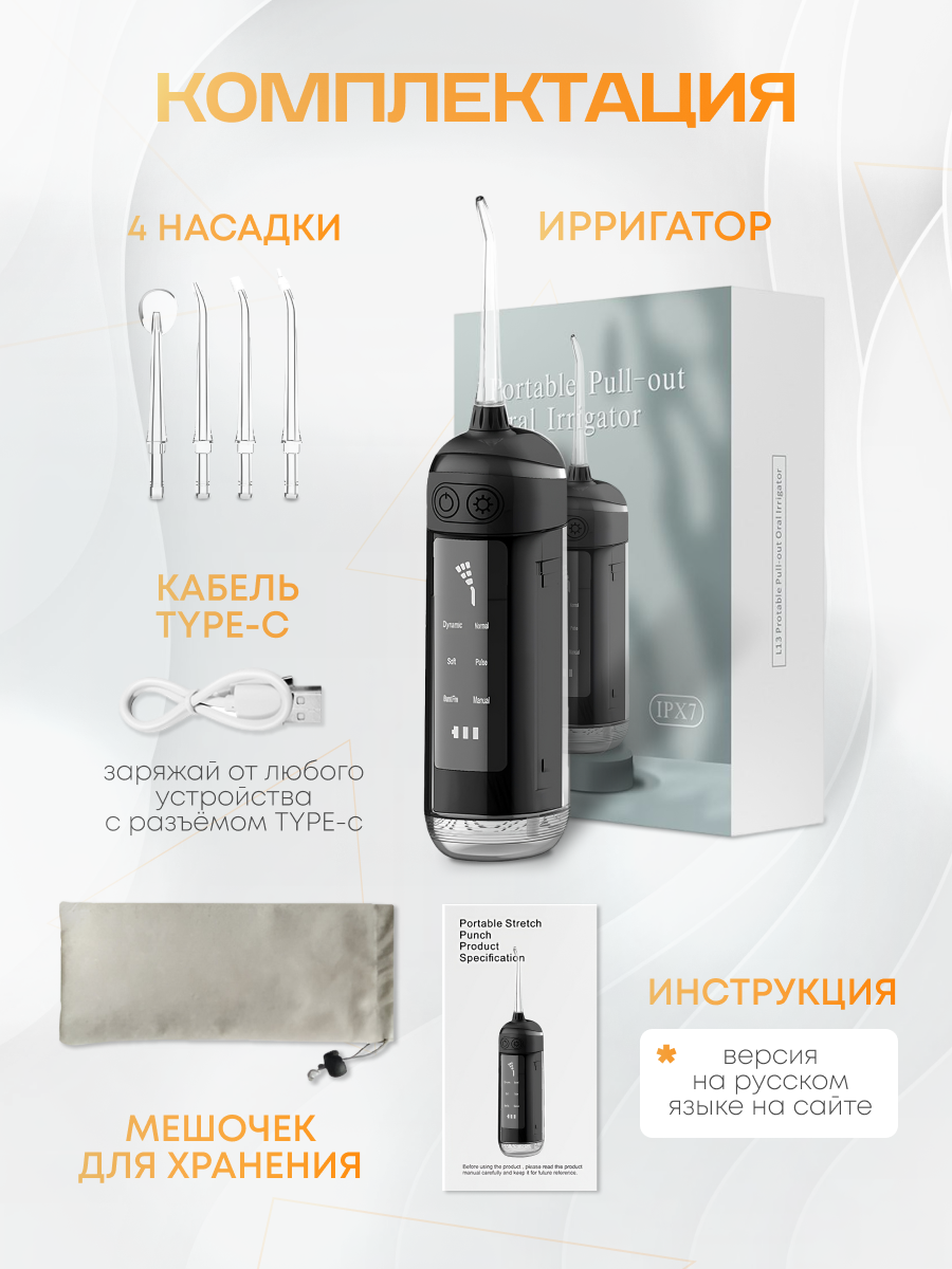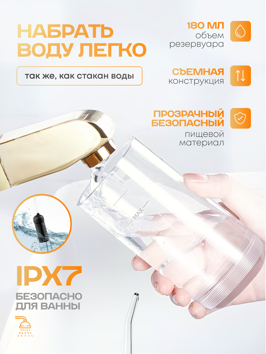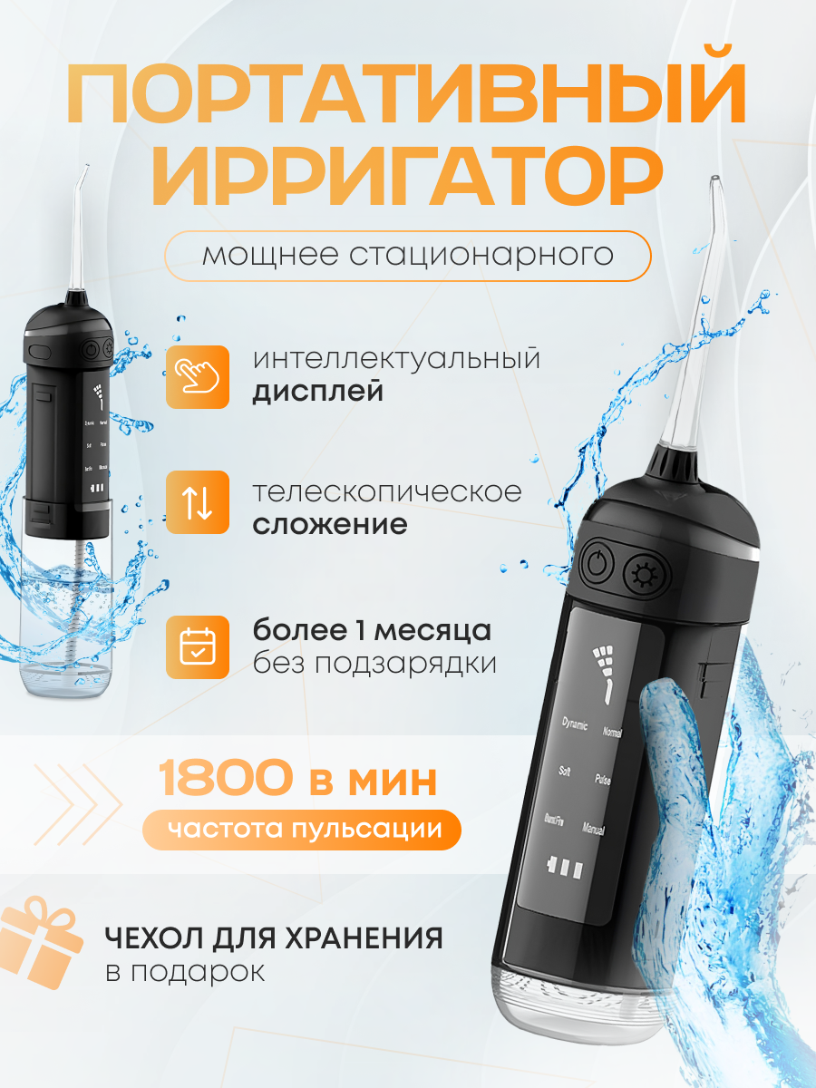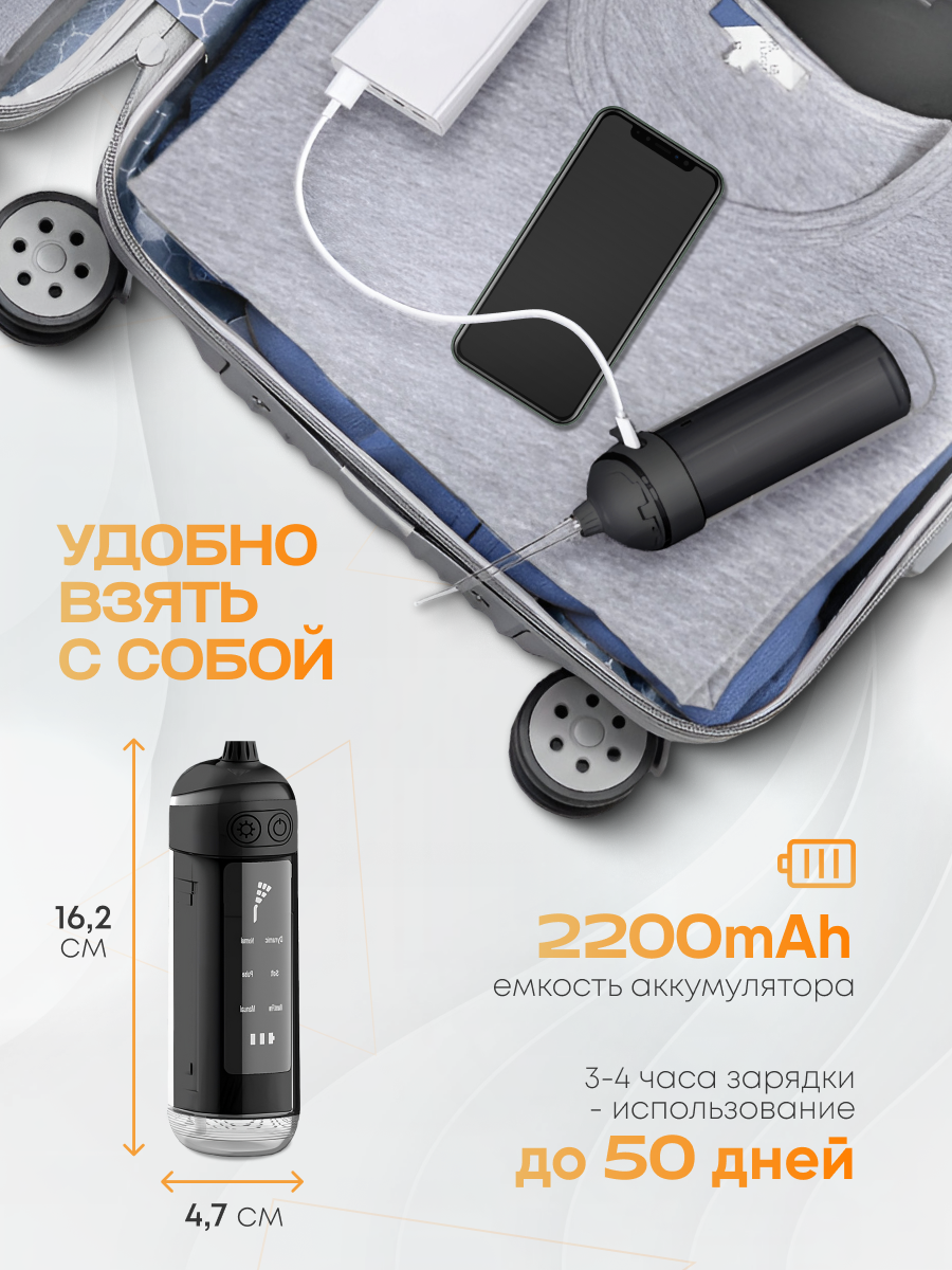 Ирригатор для зубов портативный NAVISA, 4 насадки, 965 кПа, пульсация 1800 уд. в мин. интересное: