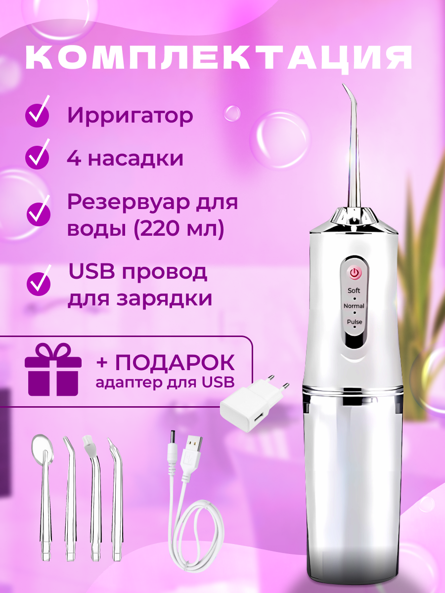 Ирригатор для чистки зубов и десен, портативный ирригатор с 4 насадками и зарядным устройством в подарок интересное: