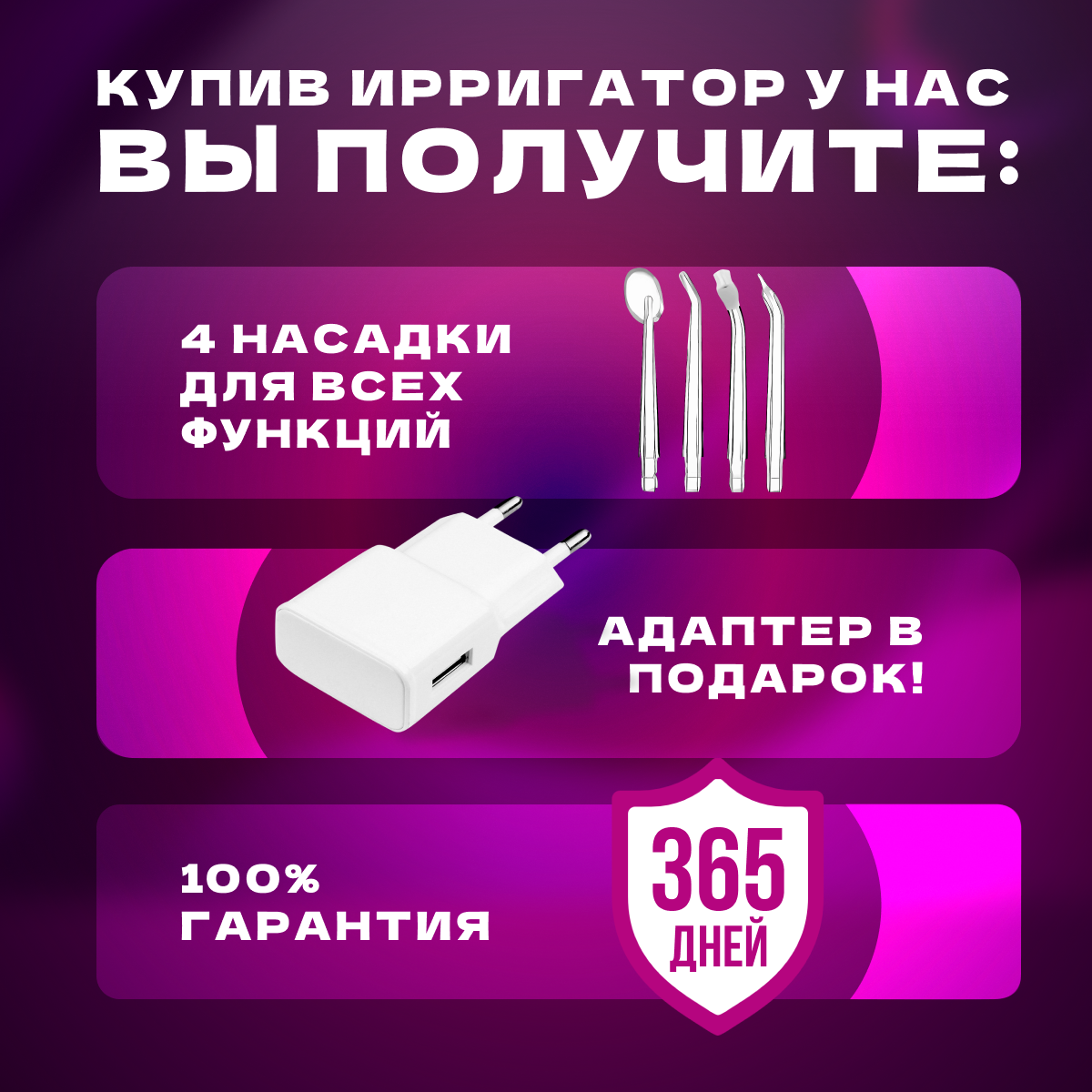 Купить Ирригатор для чистки зубов и десен, портативный ирригатор с 4 насадками и зарядным устройством в подарок