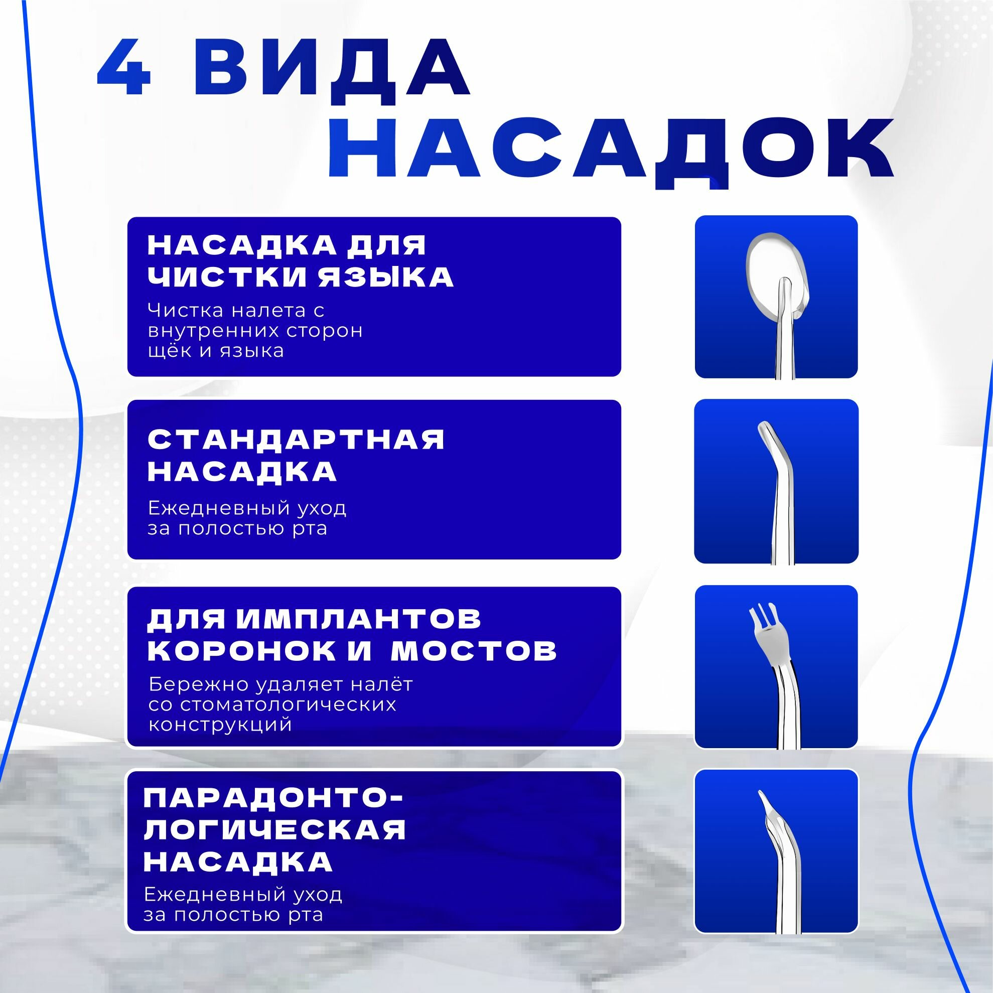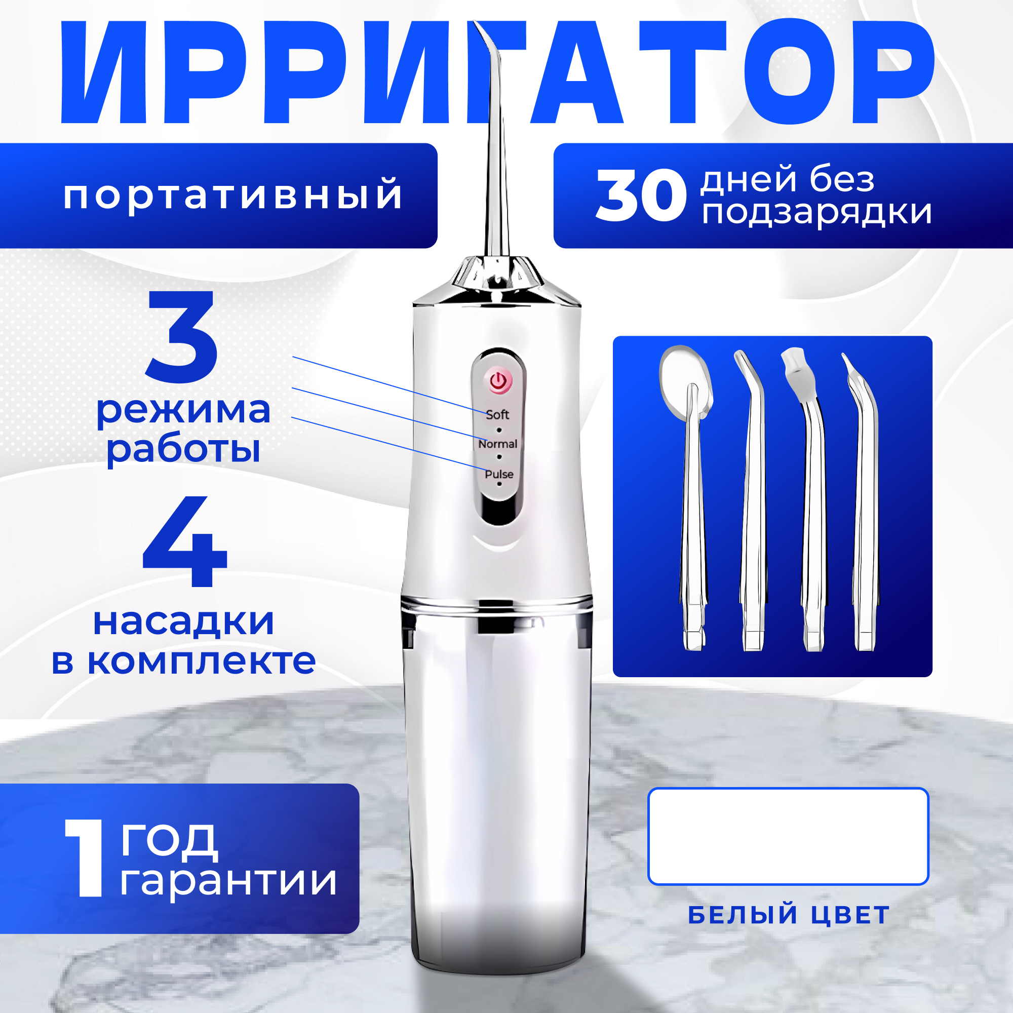 Ирригатор для полости рта портативный белый цвет, 4 насадки, 3 режима интересное: