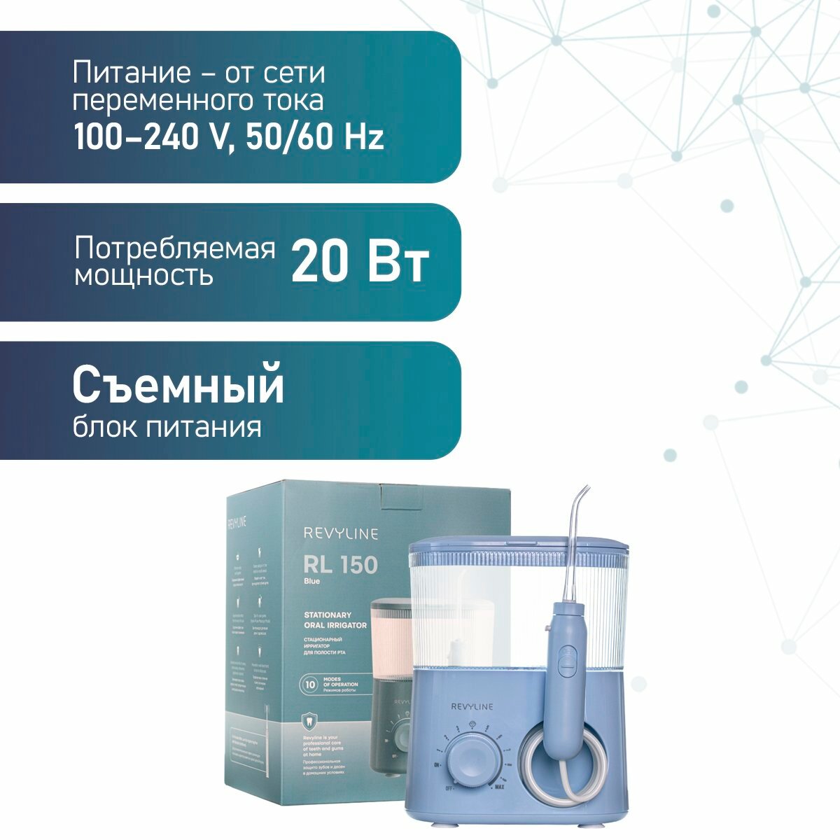 Ирригатор Revyline RL150, импульсный, 10 режимов, 600мл, питание от сети