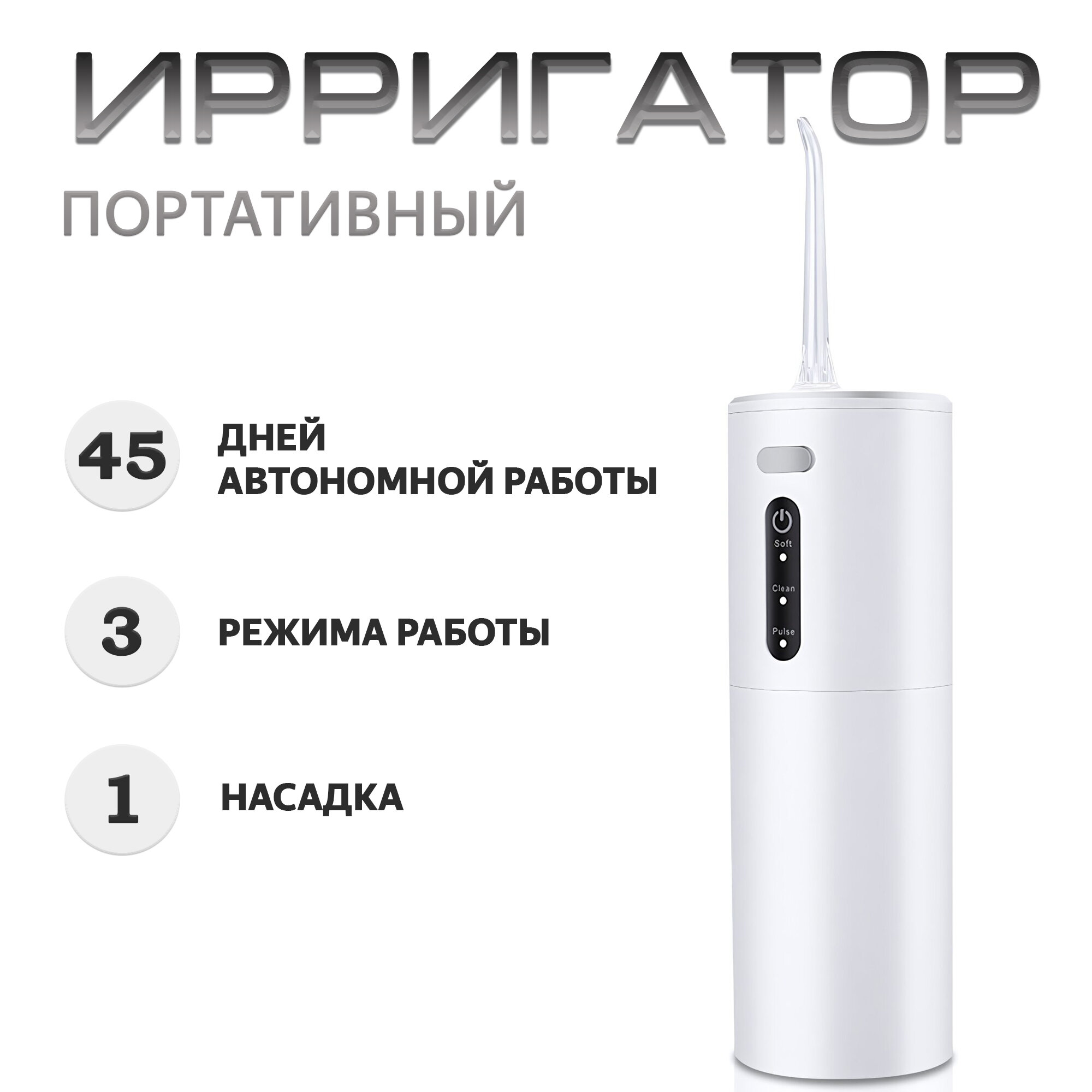 Купить Портативный ирригатор Electric Water Flosser, 3 режима работы, 1 насадка, цвет белый