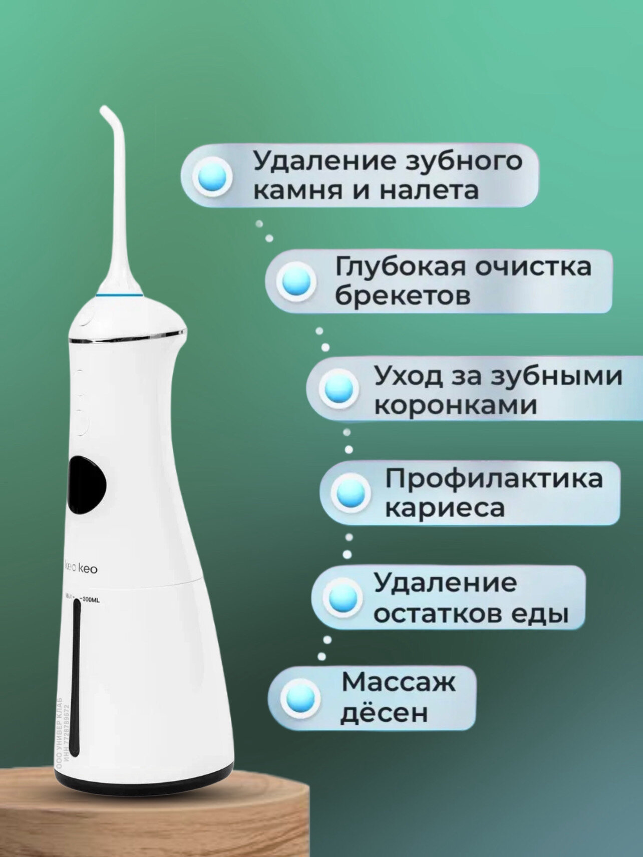 Портативный Ирригатор для полости рта Keo Keo 4 насадки, Емкость 330 мл, 5 режимов работы L12-02