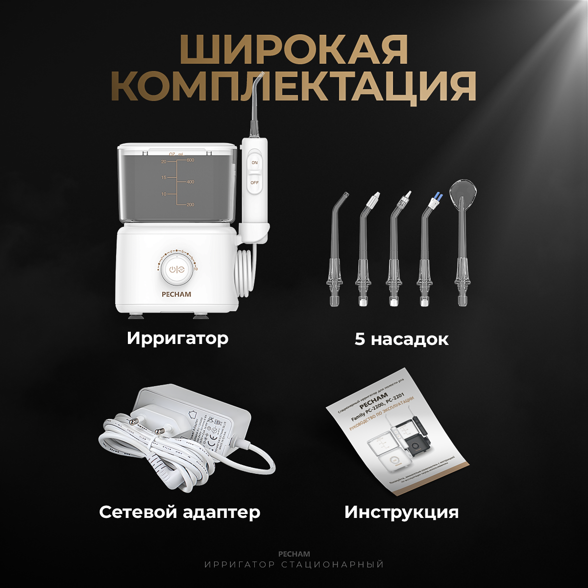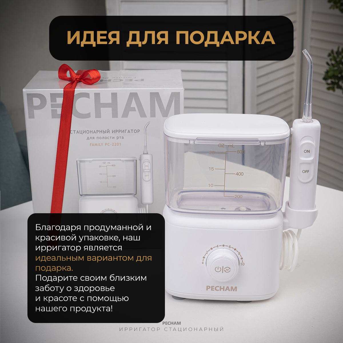Ирригатор для полости рта стационарный PECHAM Family, 600 мл, для брекетов, имплантов, отбеливание зубов, семейный интересное:
