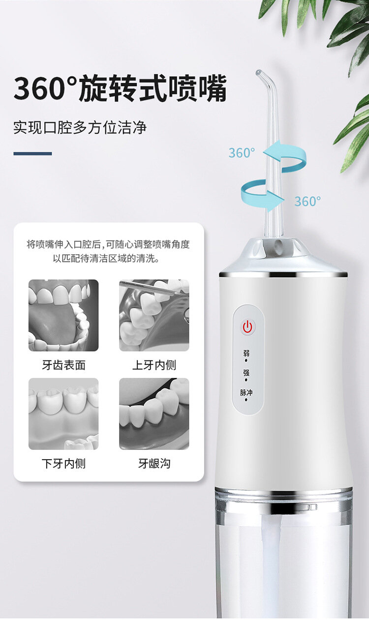Электрическое устройство для промывки зубов, портативное, с 4 насадками, белое