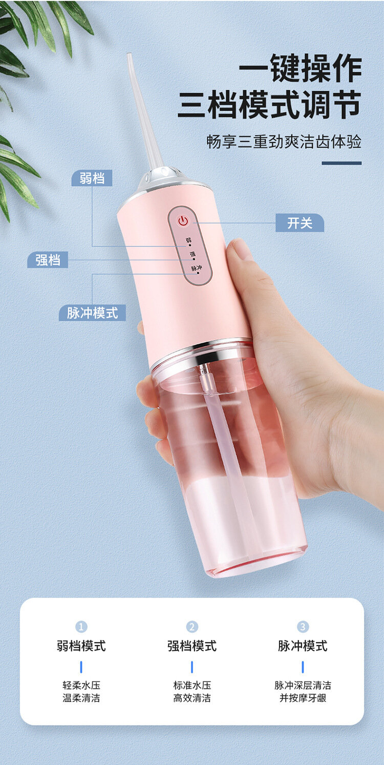 Купить Электрическое устройство для промывки зубов, портативное, с 4 насадками, розовое