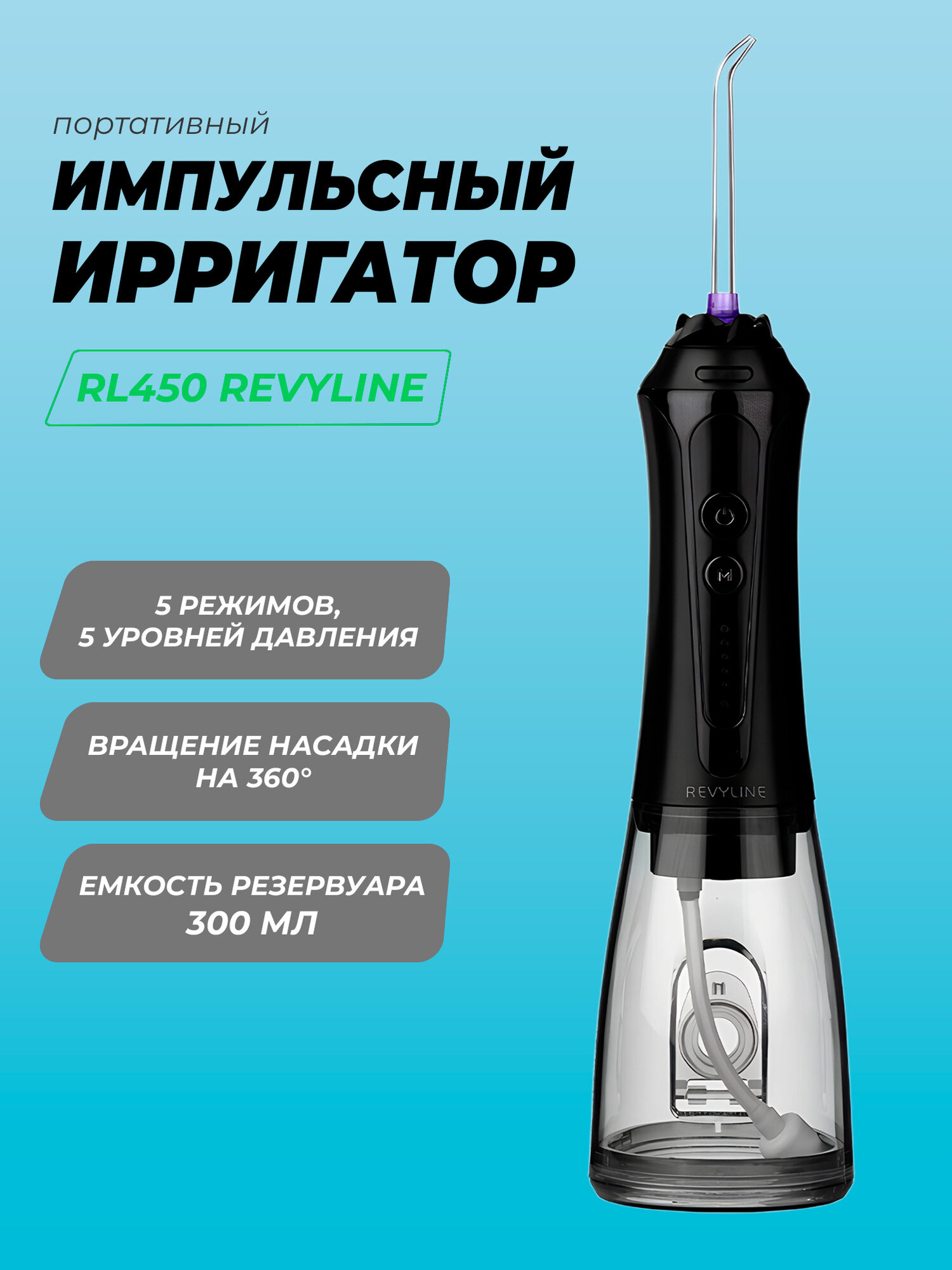 Портативный импульсный ирригатор Revyline RL450 new, цвет черный интересное: