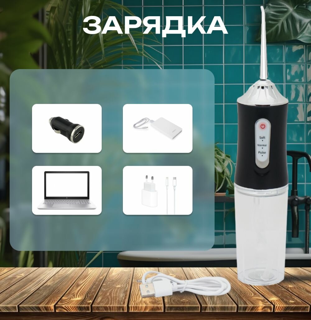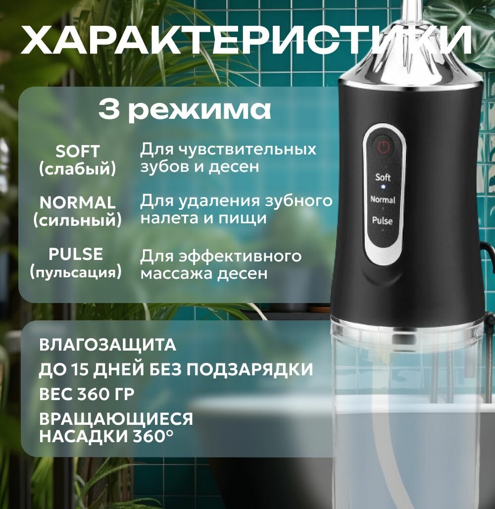 Ирригатор для полости рта портативный, с комплектом насадок, черный интересное: