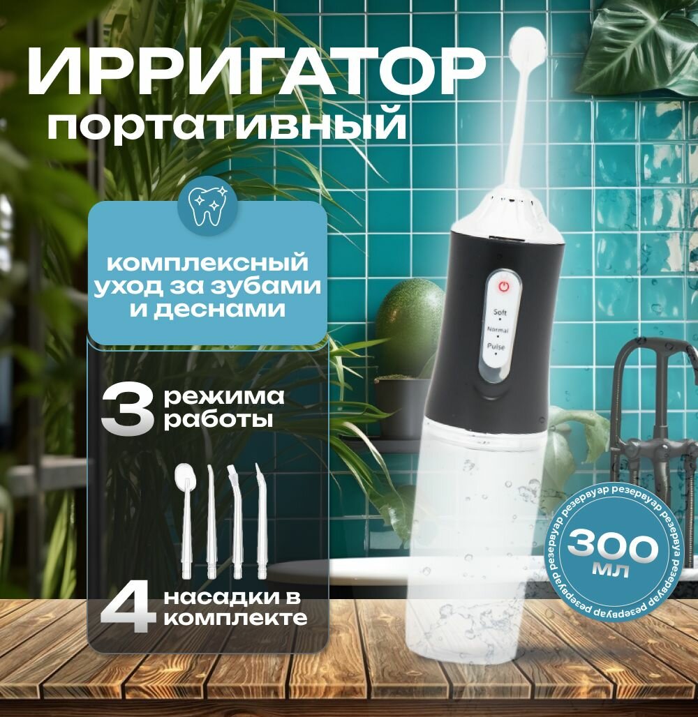 Купить Ирригатор для полости рта портативный, с комплектом насадок, черный