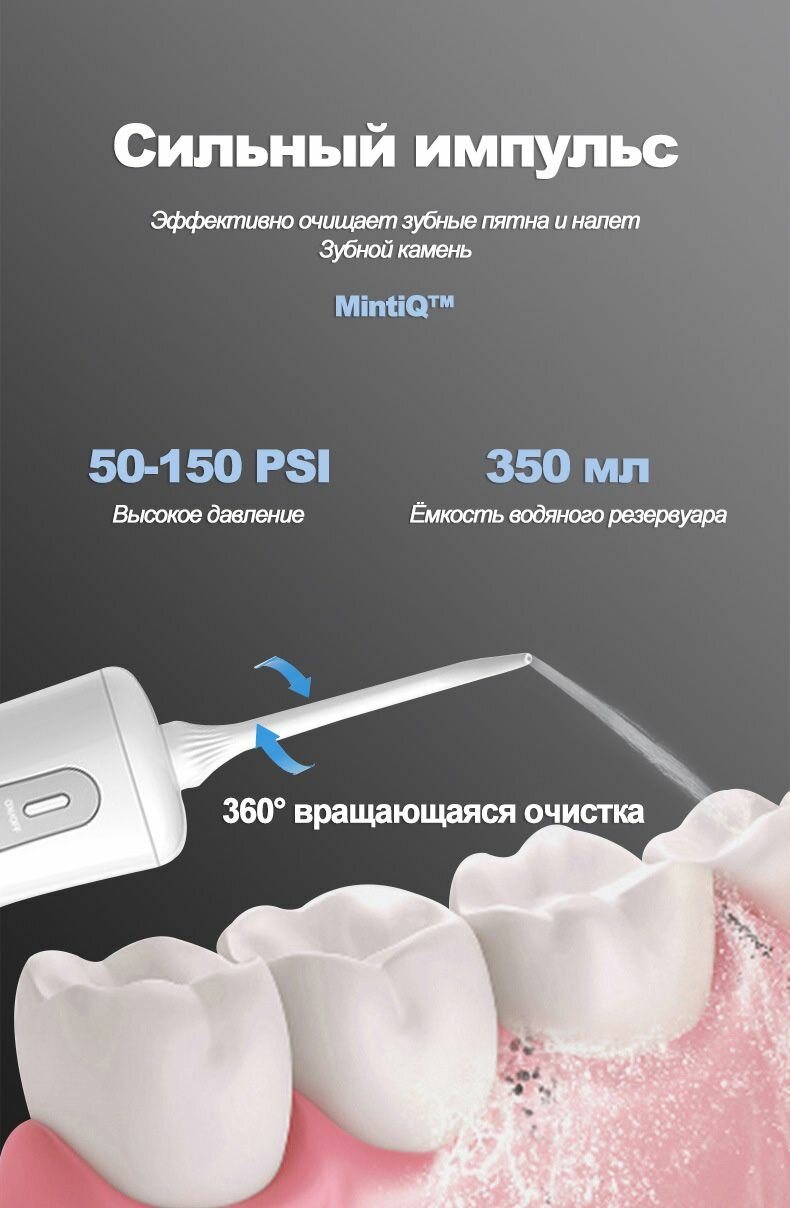 Ирригатор для полости рта AOW03S - портативный электрический ирригатор с 5 режимами, 350 мл баком и USB зарядкой белый интересное: