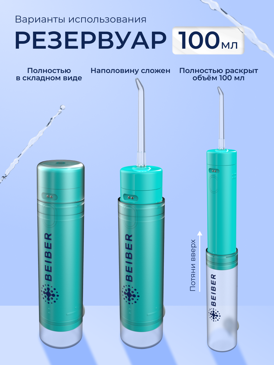 Купить Ирригатор BEIBER, портативный, беспроводной, дорожный, бирюзовый, 200мл