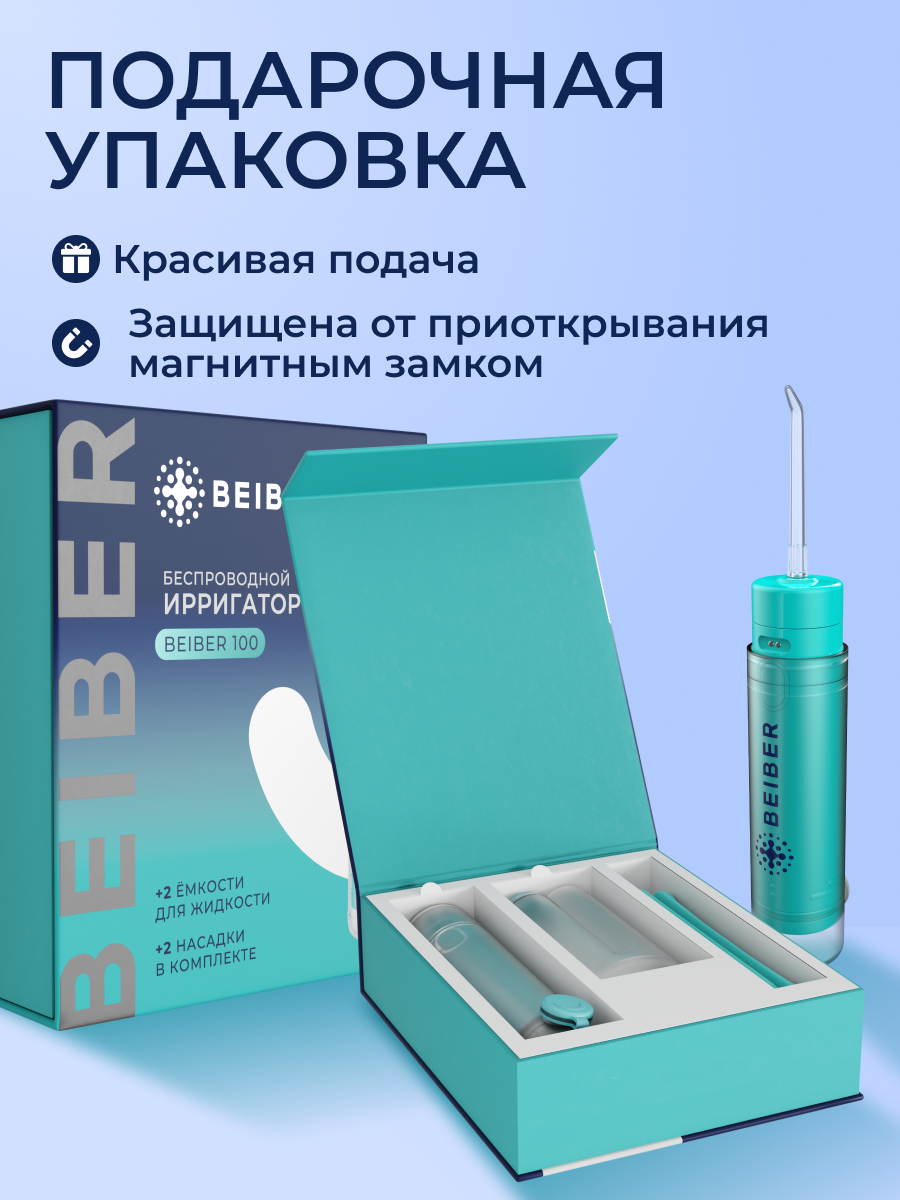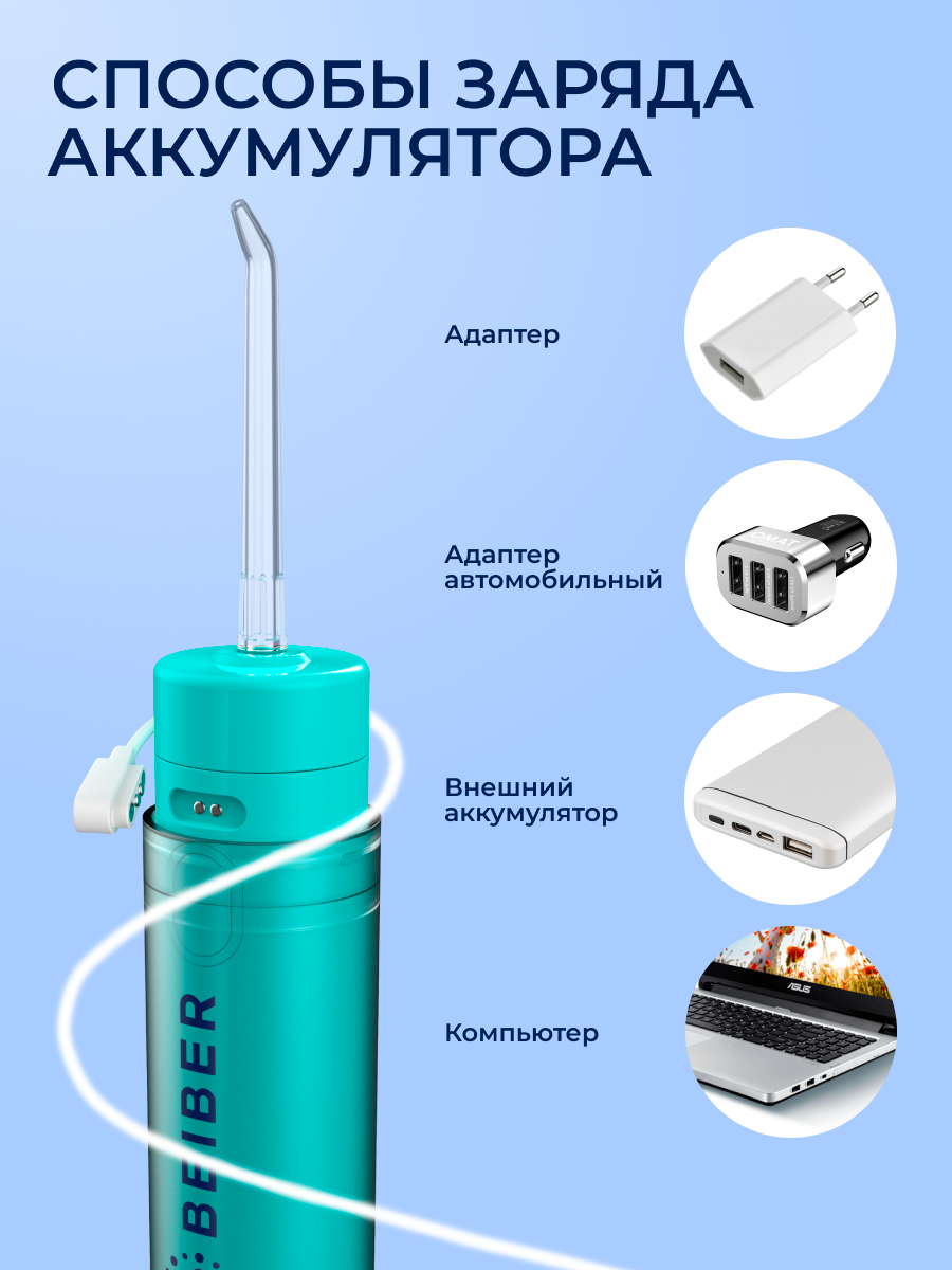 Ирригатор BEIBER, портативный, беспроводной, дорожный, бирюзовый, 200мл интересное: