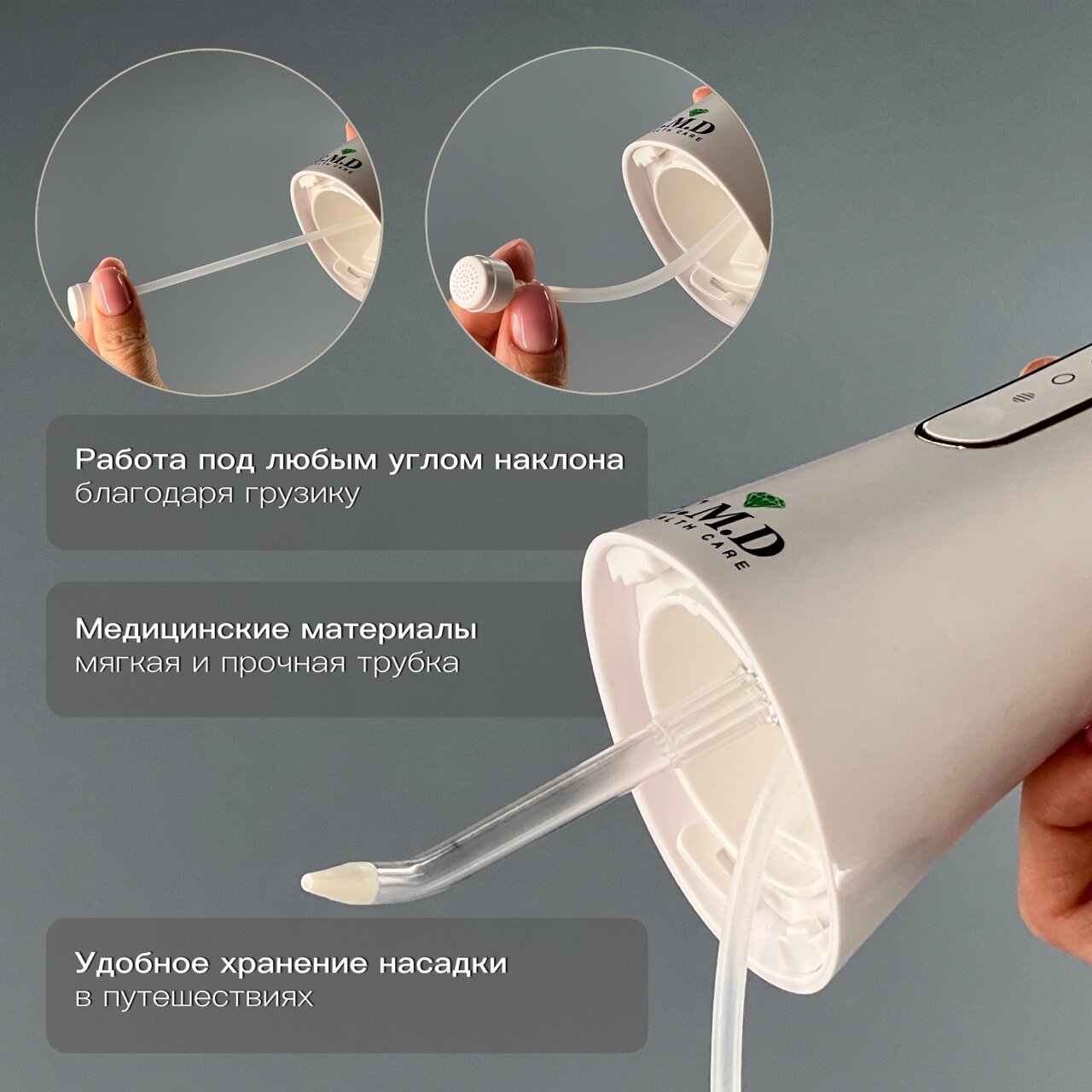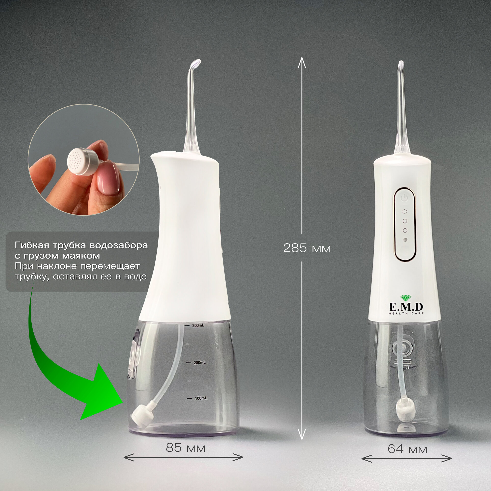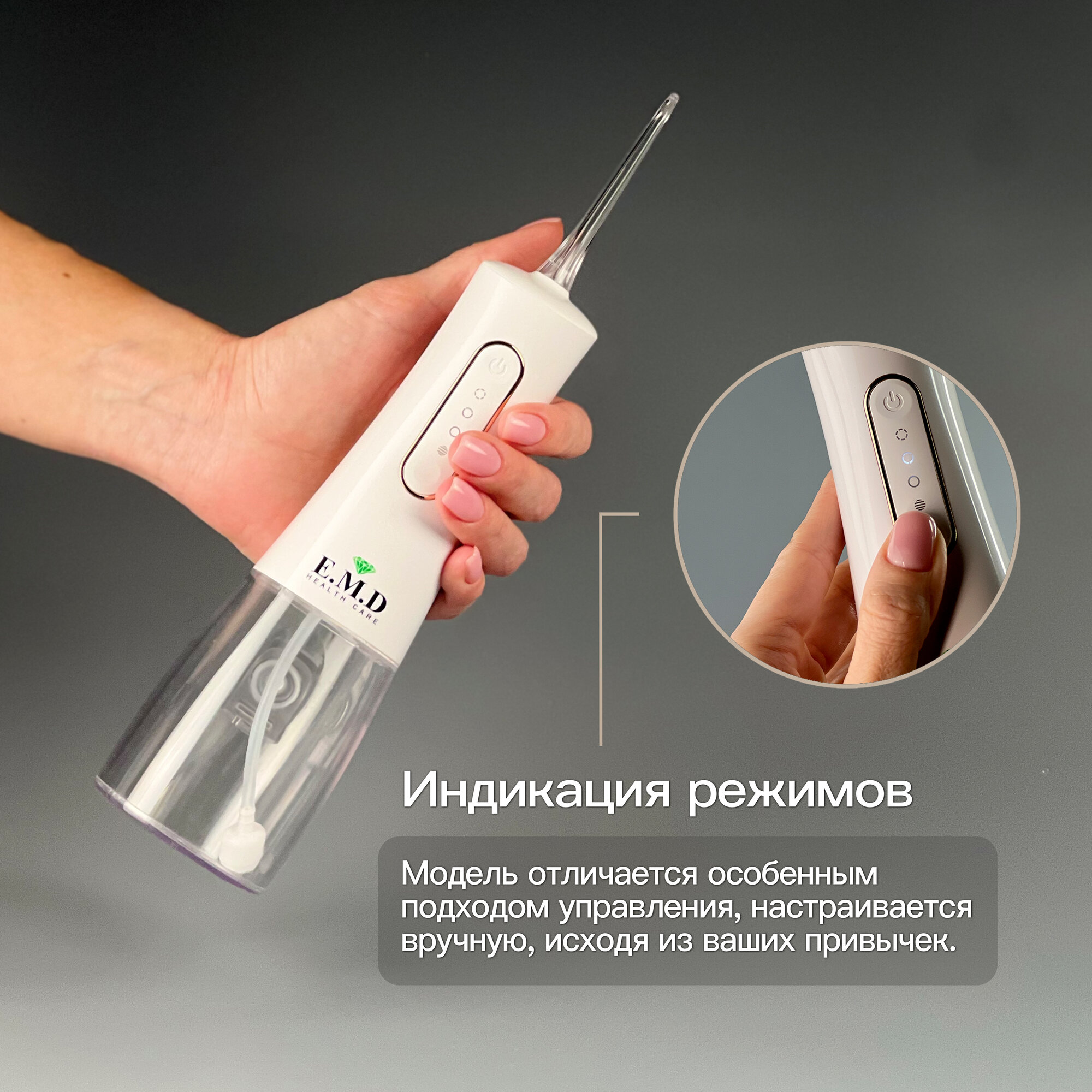 Ирригатор для полости рта E.M.D WG10 NEW портативный белый для зубов, для брекетов, стоматологический, с насадками интересное: