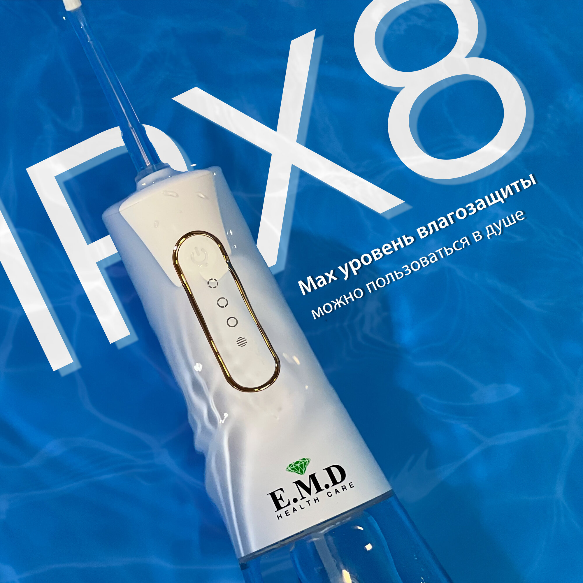 Купить Ирригатор для полости рта E.M.D WG10 NEW портативный белый для зубов, для брекетов, стоматологический, с насадками