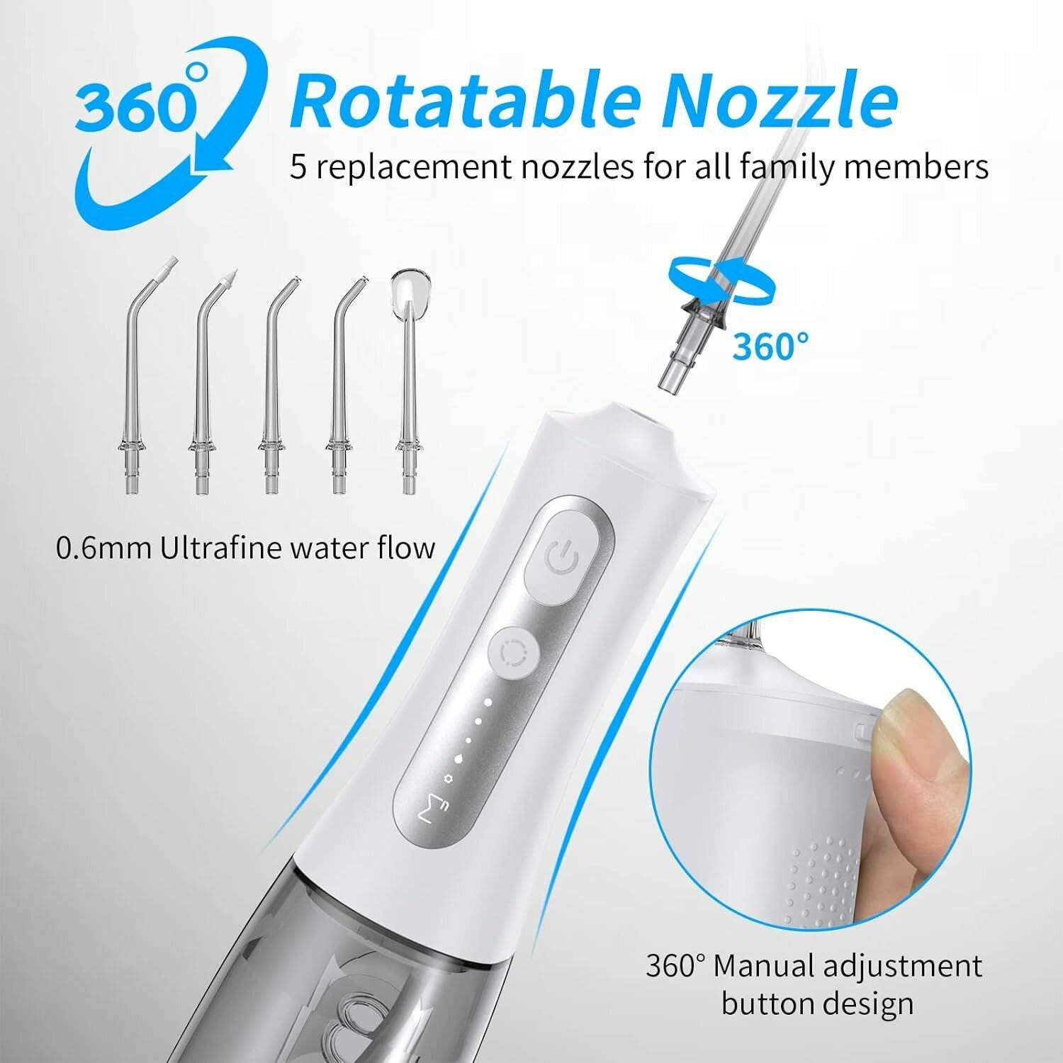 Портативный ирригатор для полости рта, 4 насадки, резервуар 200 мл, бирюзовый/оранжевый