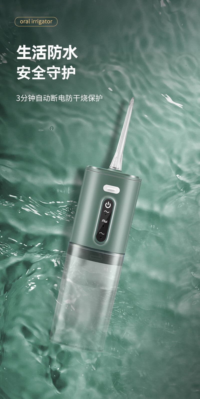 Портативный ирригатор для полости рта, 4 насадки, резервуар 200 мл, бирюзовый/оранжевый