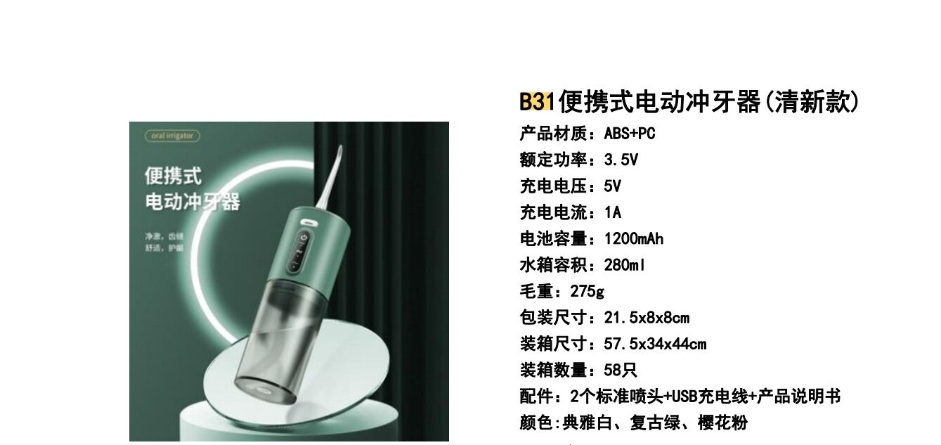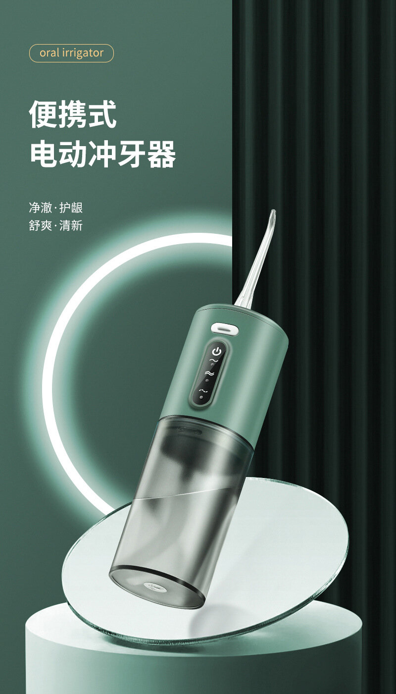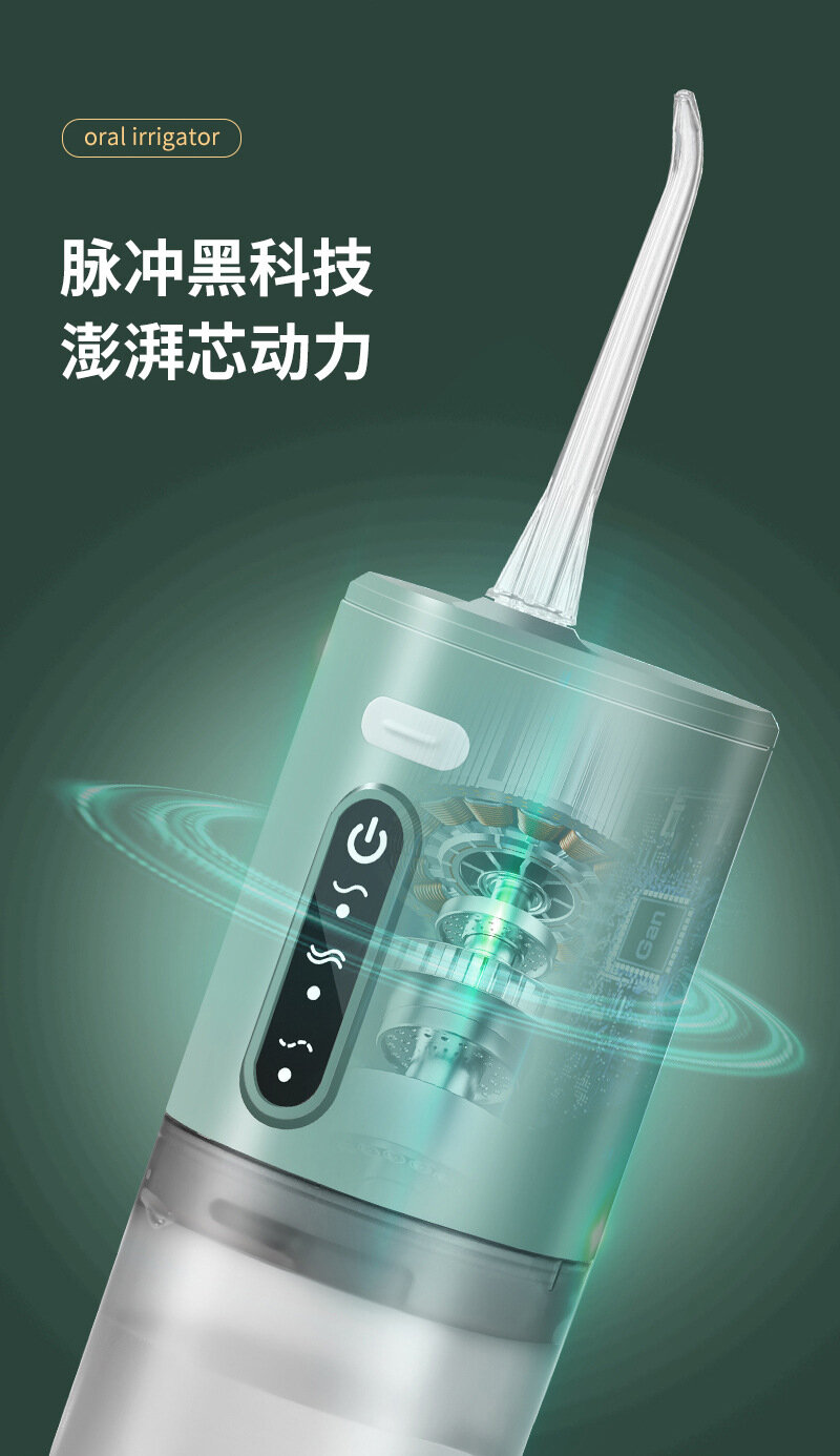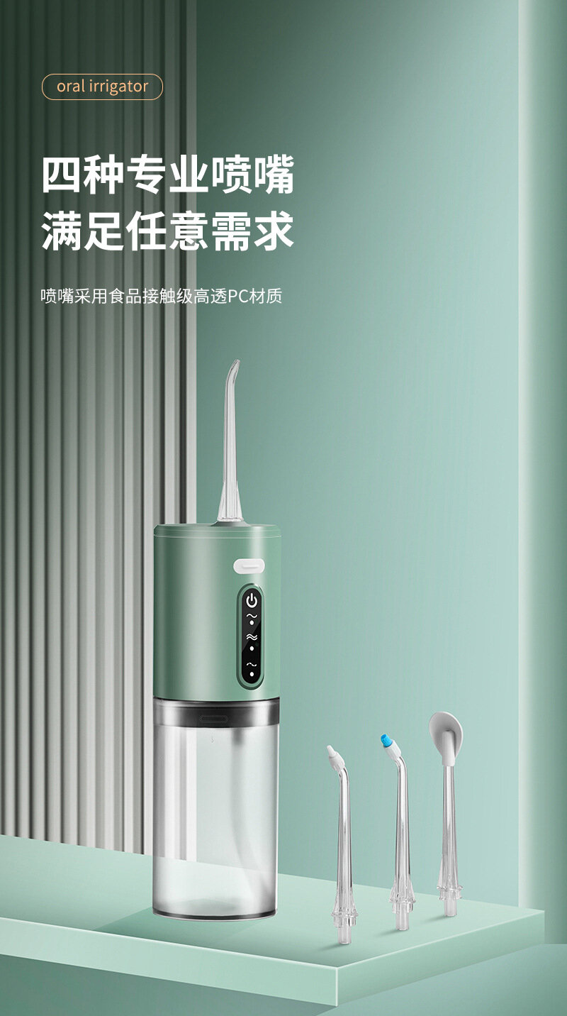 Портативное устройство для чистки зубов, 2 насадки, светло-зеленое