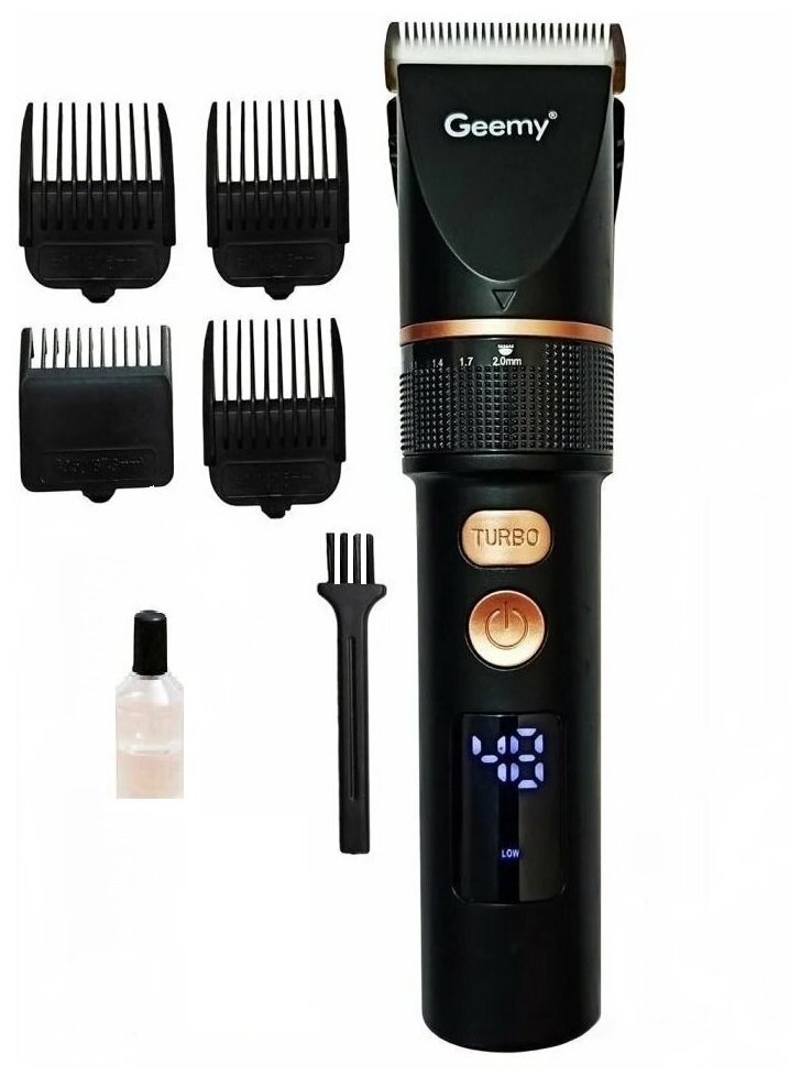 | комплектация | аккумуляторная машинка для стрижки волос с керамическими лезвиями, 4 насадки, щетка, масло, кабель для зарядки |