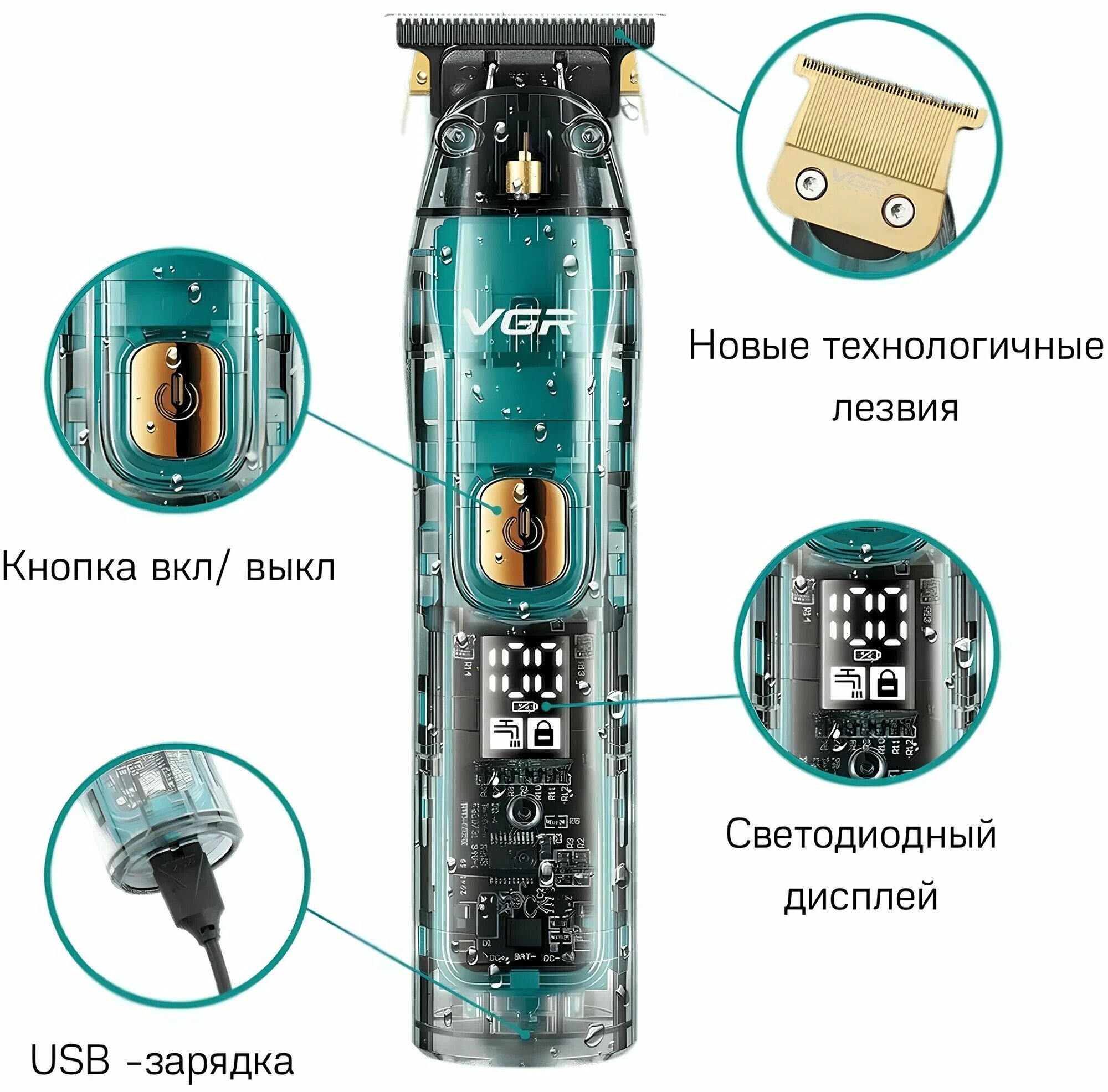 Профессиональный триммер для стрижки волос и бороды VGR V961 интересное: