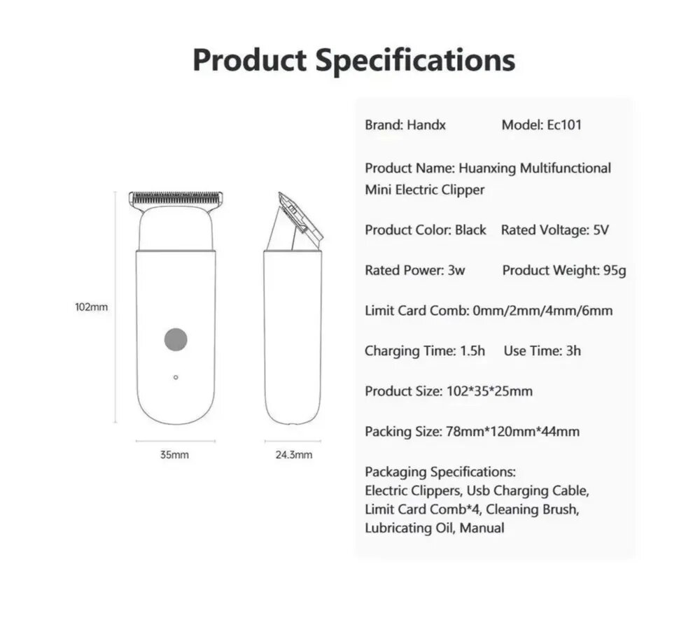 Электрический триммер Huanxing EC101, 4 насадки, для бороды и усов, CN, графитовый интересное: