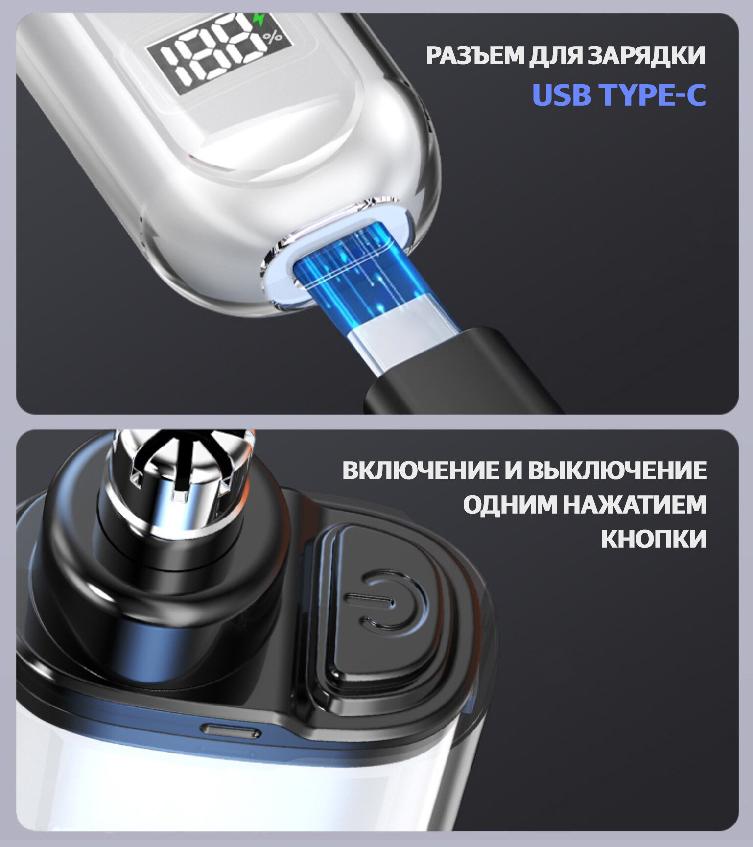 Триммер для стрижки волос в носу и ушах, компактный, с цифровым дисплеем, цвет белый