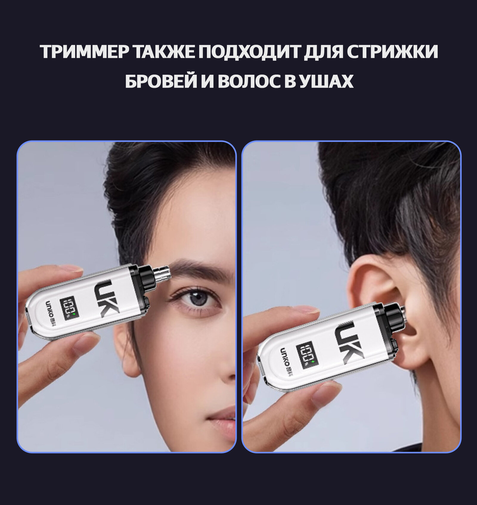 Триммер для стрижки волос в носу и ушах, компактный, с цифровым дисплеем, цвет белый