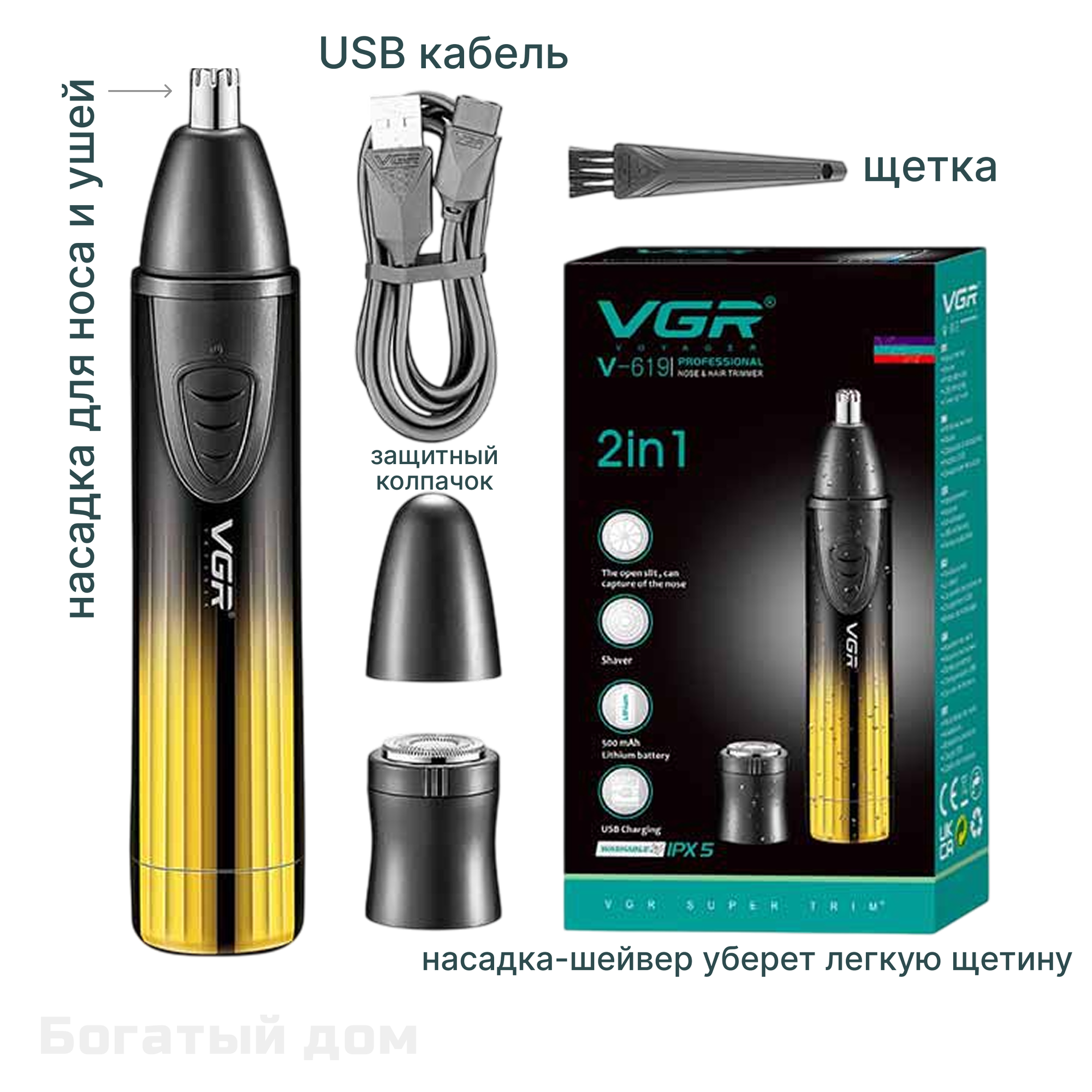 | В комплекте | бритвенный станок / защитный колпачок / кабель USB / насадка для носа / насадка для ушей / щеточка |