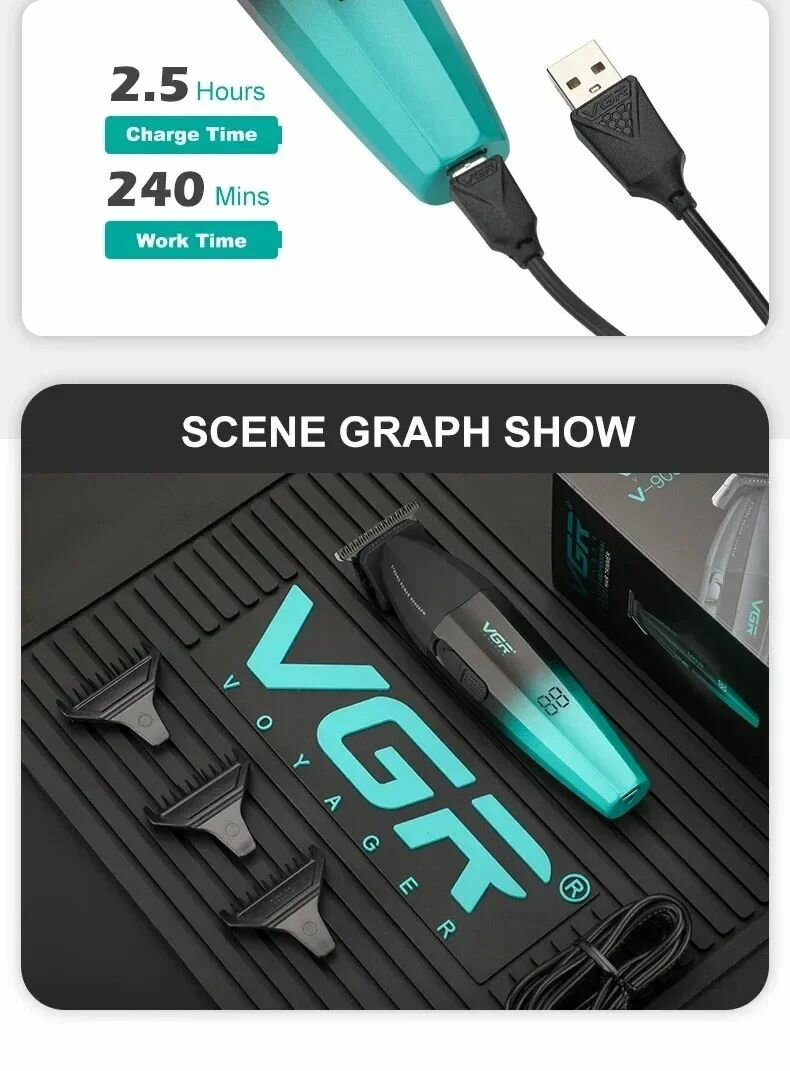 Машинка для стрижки VGR Blue V003, 9000 об/мин, литий-ионный аккумулятор 2500mAh интересное: