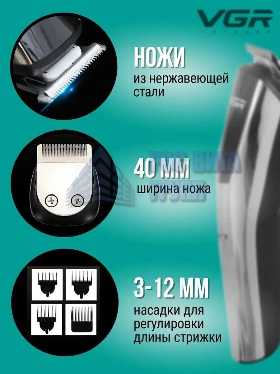 Машинка для стрижки VGR Professional VGR V-008, серебристый