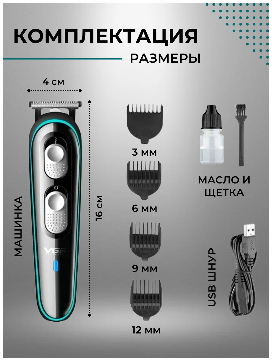 Аккумуляторная машинка для стрижки волос VGR V-055 Водонепроницаемая беспроводная электрическая интересное: