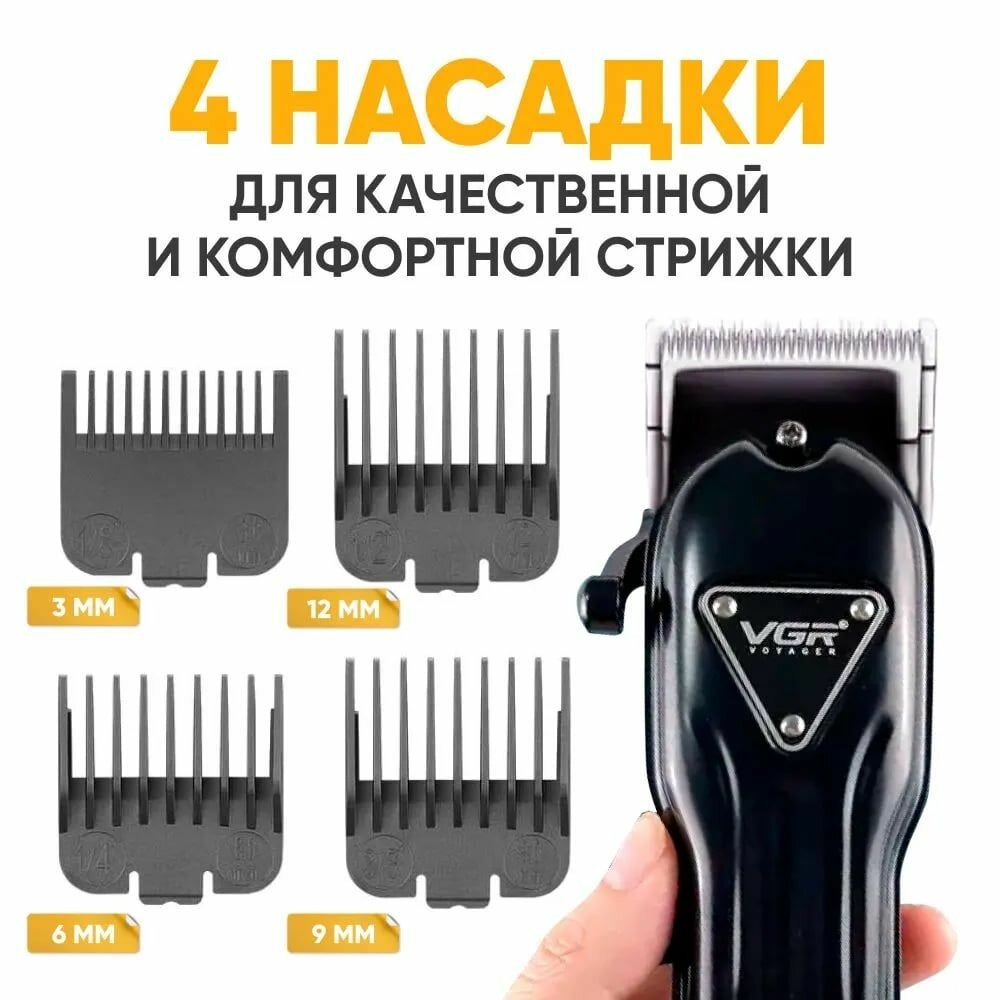 Профессиональная машинка для стрижки волос VGR V-697, Профессиональная машинка с насадками/Аккумуляторная/Окантовочная