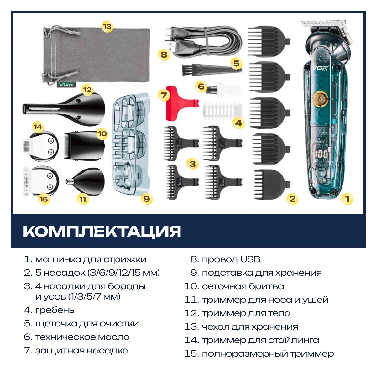 Профессиональный аккумуляторный триммер для усов и бороды 6 В 1 интересное: