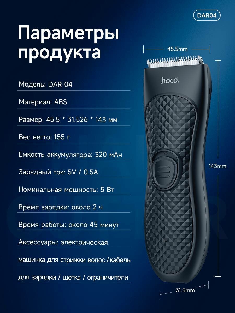 Машинка для стрижки волос Hoco DAR04 (black) тример-бритва мужская беспроводная интересное: