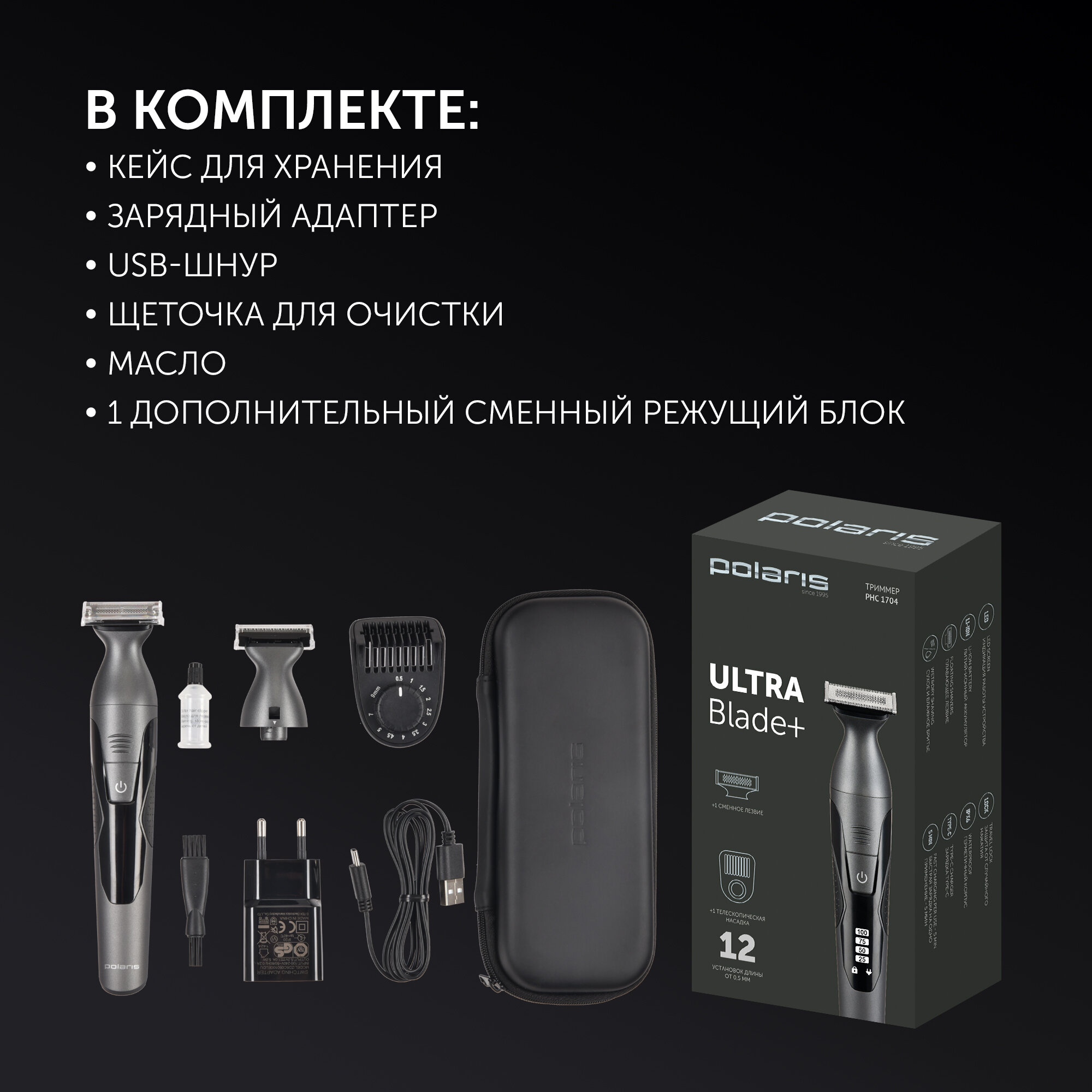 Триммер для бороды и усов Polaris PHC 1704 ULTRA BLADE+, Графитовый интересное: