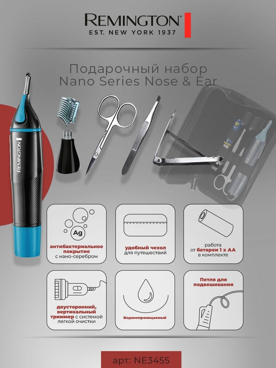 Триммер с набором для путешествий Remington Nano Series Nose & Ear NE3455 интересное: