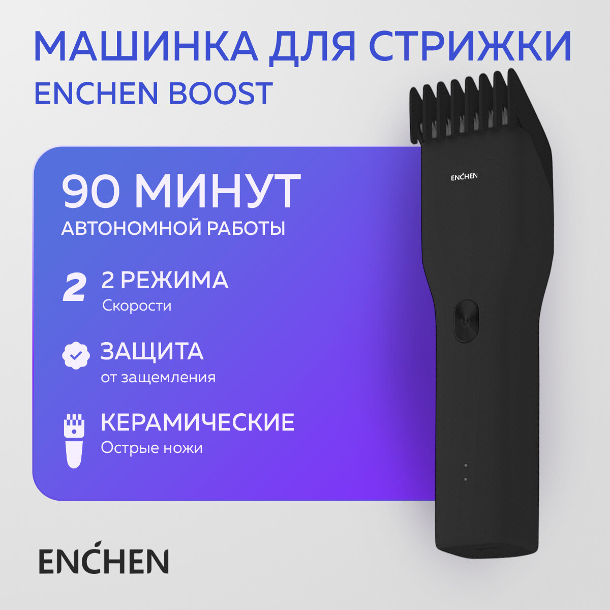 Машинка для стрижки Enchen Boost Prime, на аккумуляторе, керамические лезвия, 3-21 мм, черная