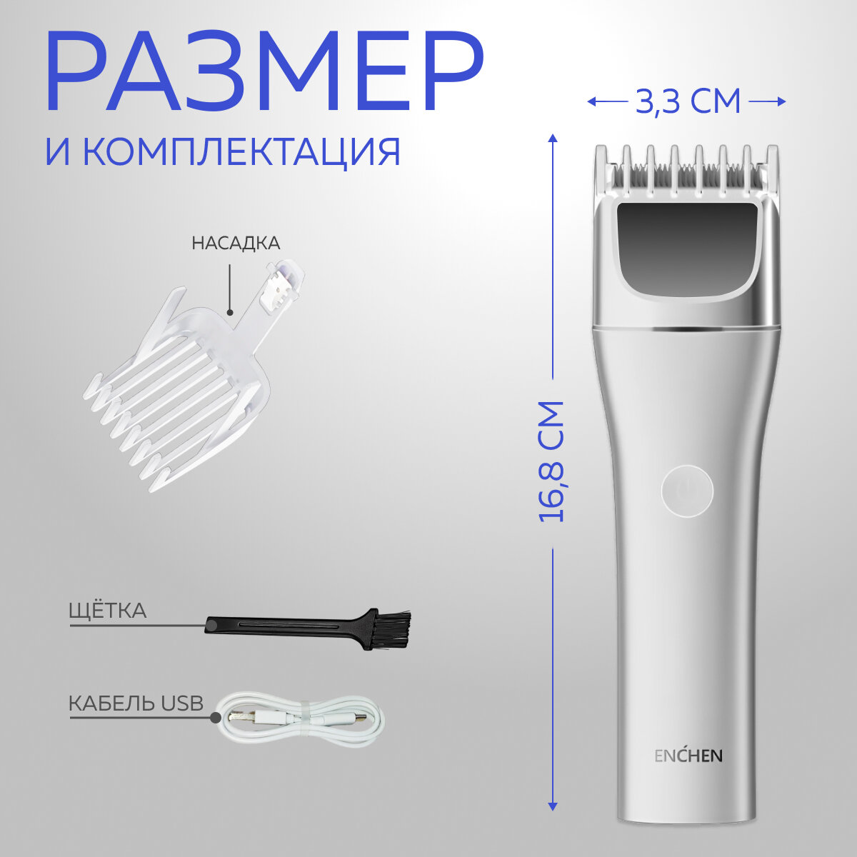 Машинка для стрижки волос Enchen Boost 3 PRO (Silver) + набор для стрижки