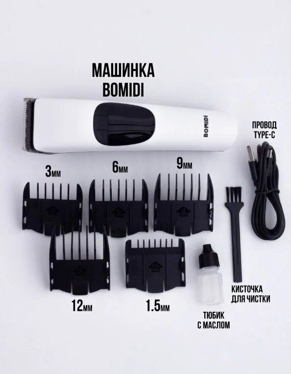 Купить Машинка для стрижки Bomidi L1, автономная, нержавеющая сталь, комплект 5 насадок