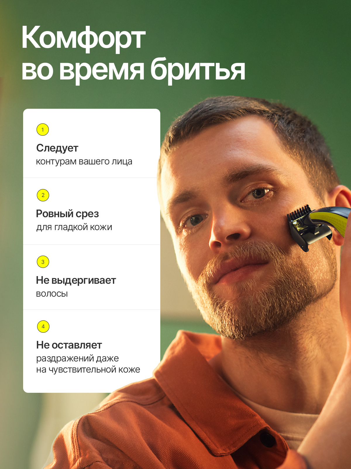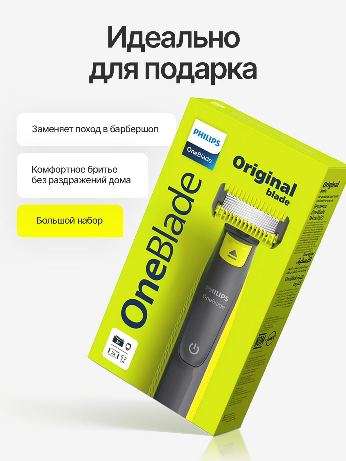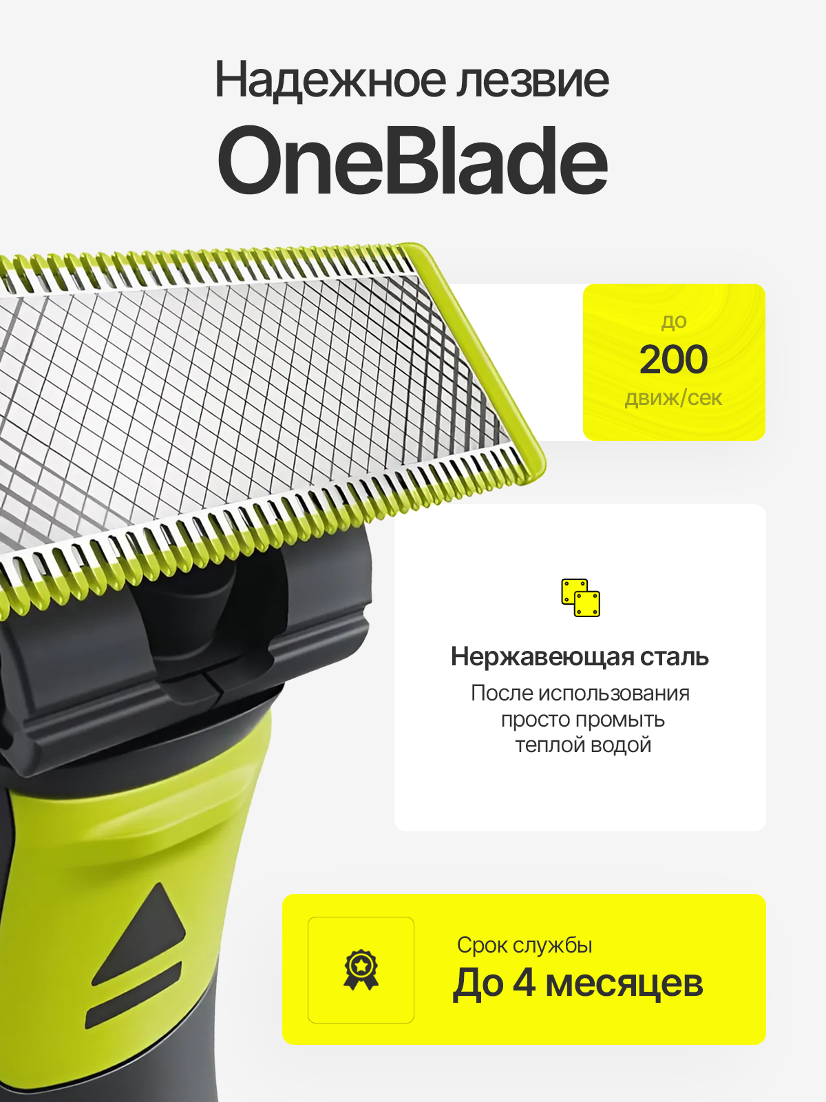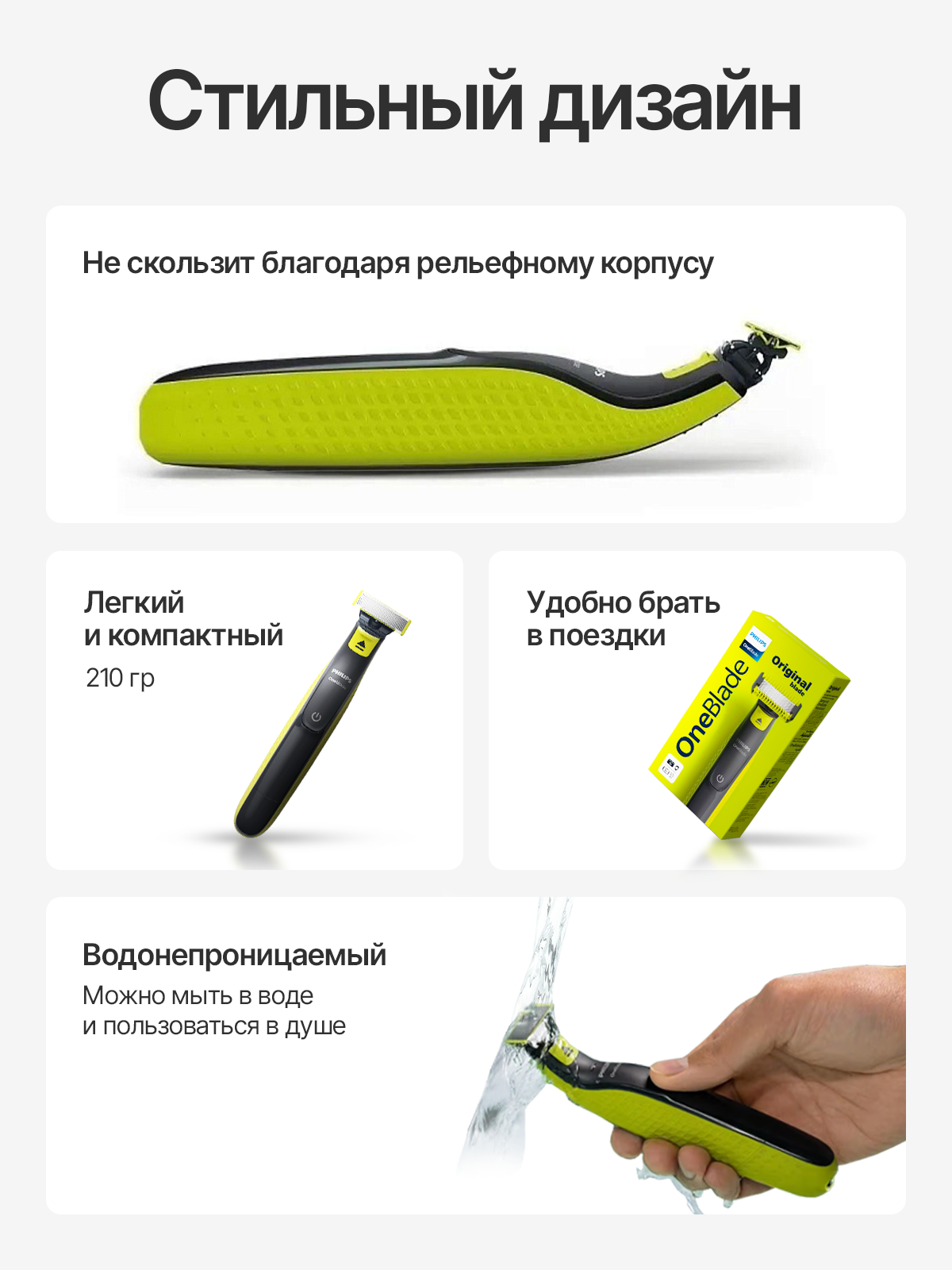 Триммер для бороды и усов Philips OneBlade QP2824/10, черный/зеленый интересное: