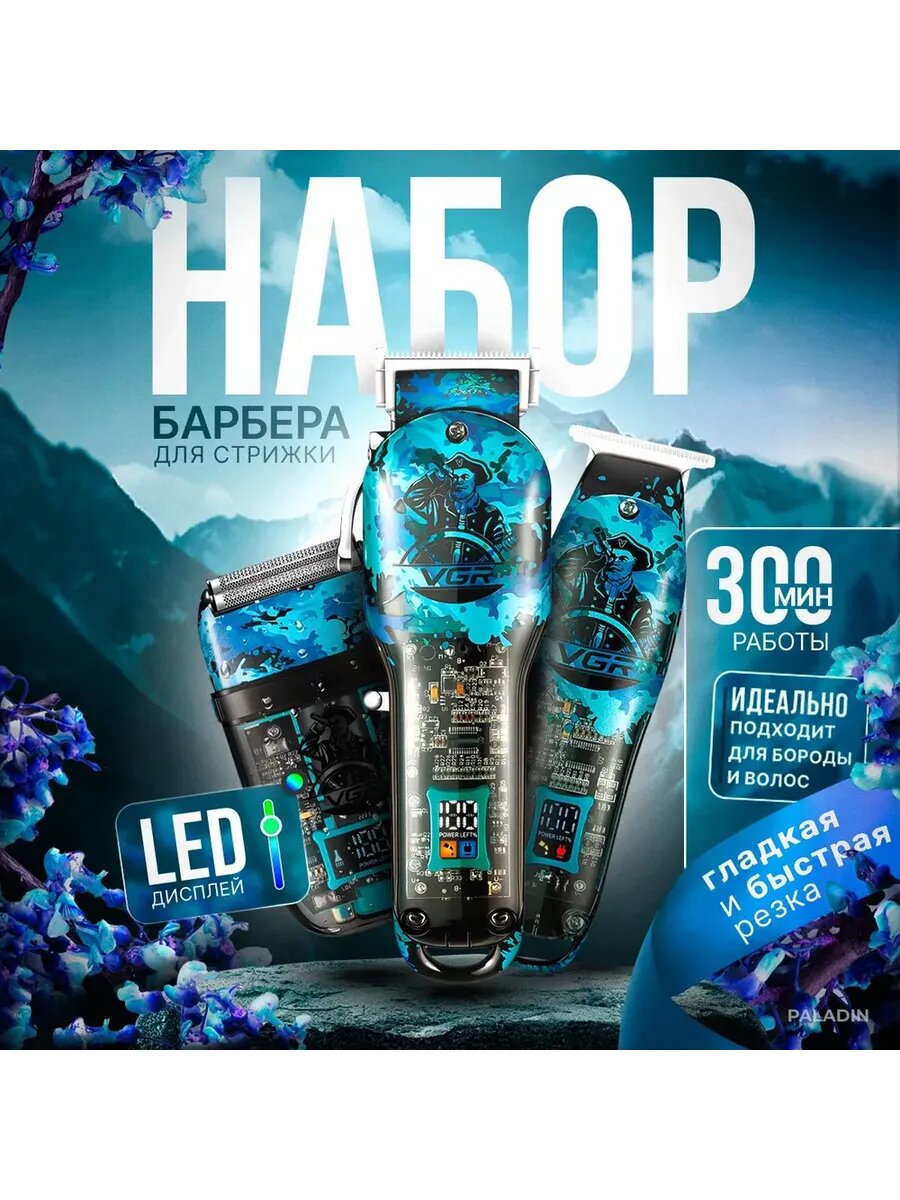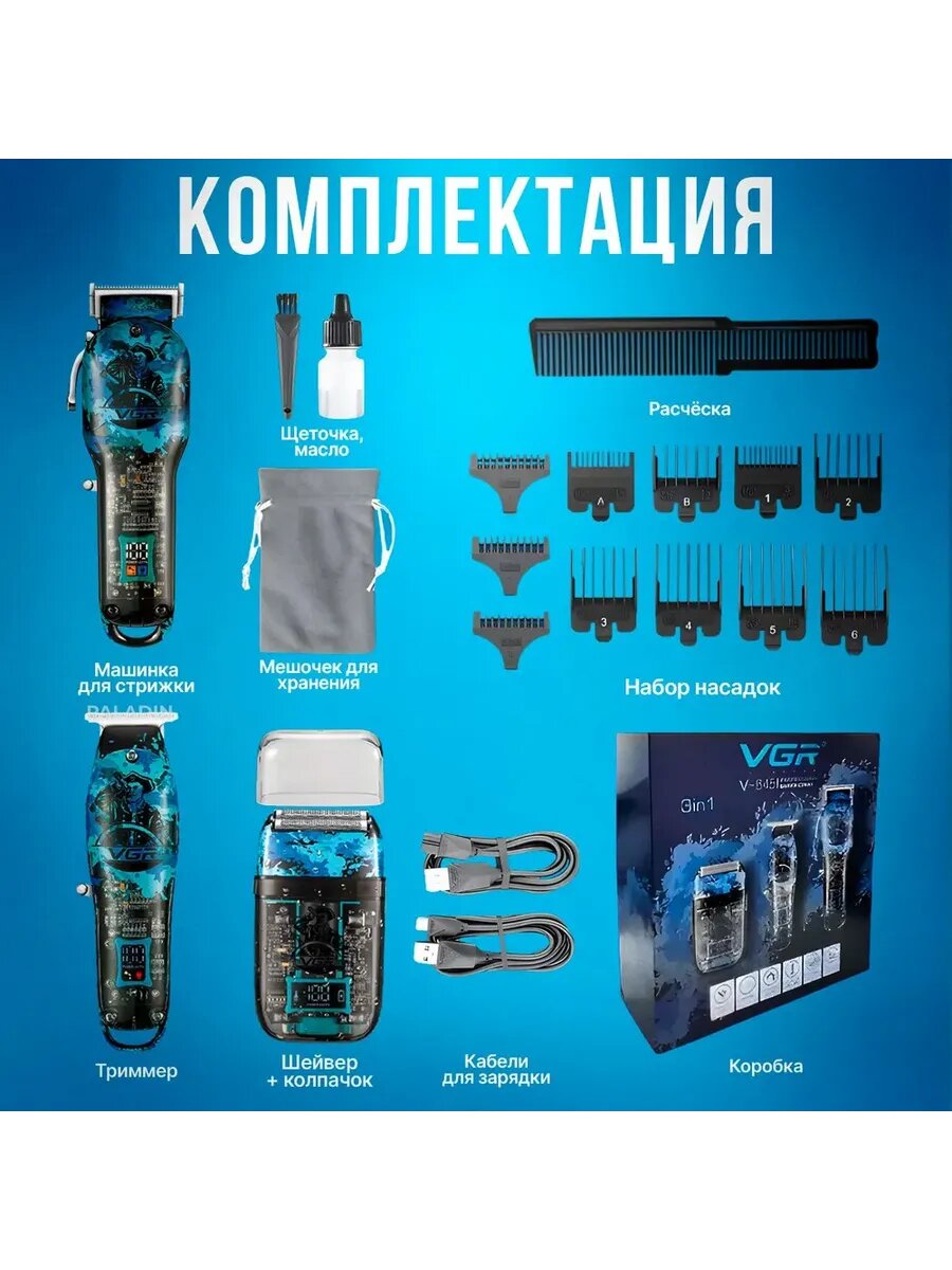 Набор для стрижки VGR V-645, 3 в 1 (машинка триммер шейвер), с LED-дисплеем, 11 насадок интересное: