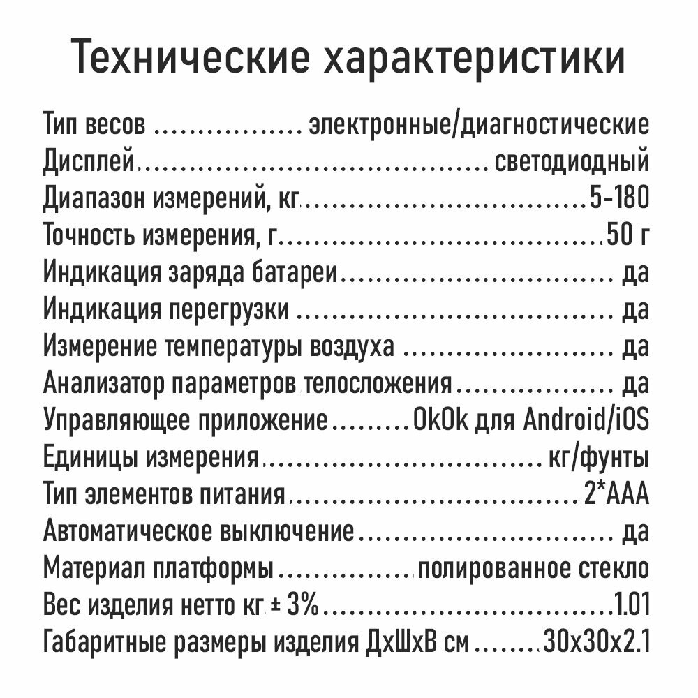 | Дополнительные функции | Вода в организме (%) / Измерение жировой и мышечной массы / Температура помещения |